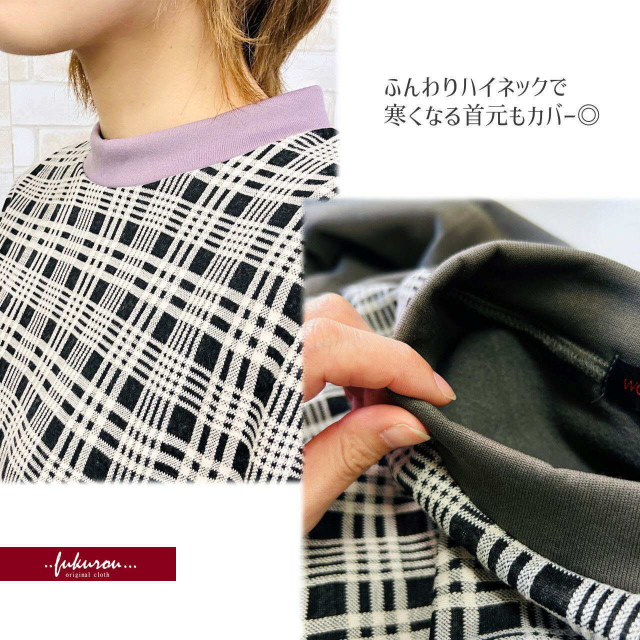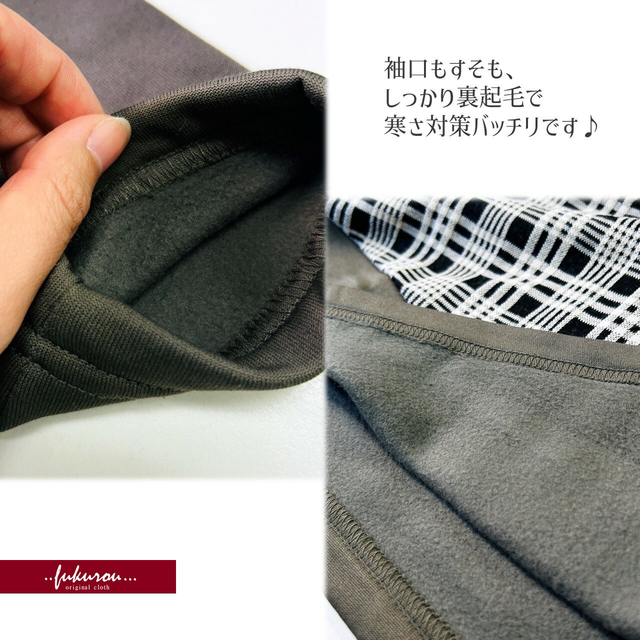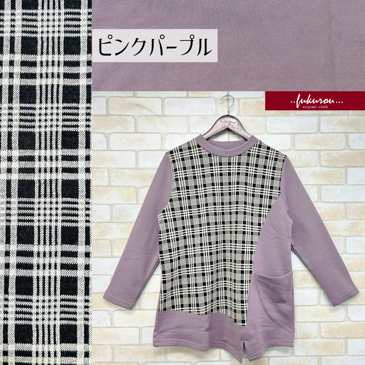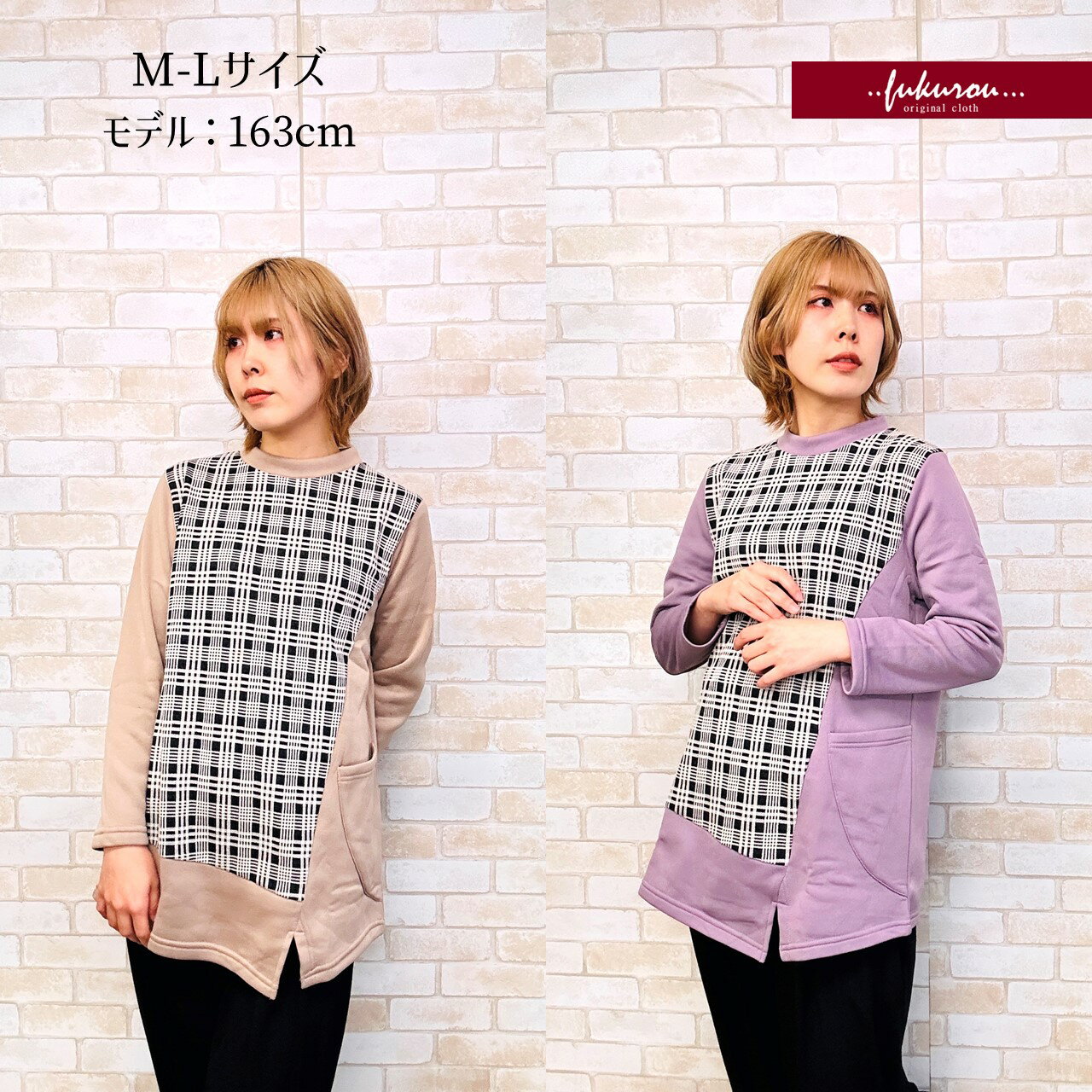 裏起毛 あったか チェック切替えチュニック レディース トップス チュニック チェック カットソー ミセス ポケット 秋冬 フリーサイズ M-L カラバリ豊富 長袖 送料無料
