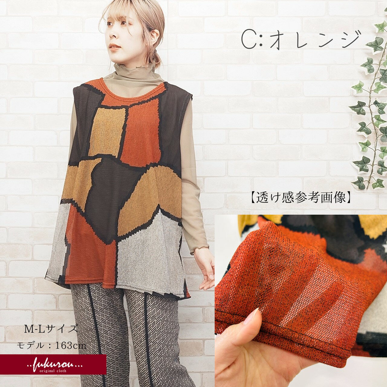 シアー 総柄プリント ノースリーブ チュニック ベスト チュニックベスト パワーネット メッシュ レディース ミセス Aライン すそ広がり ノースリ 重ね着 フリーサイズ M-L ロング丈 ロング 体型カバー 韓国製 送料無料 ネコポス配送