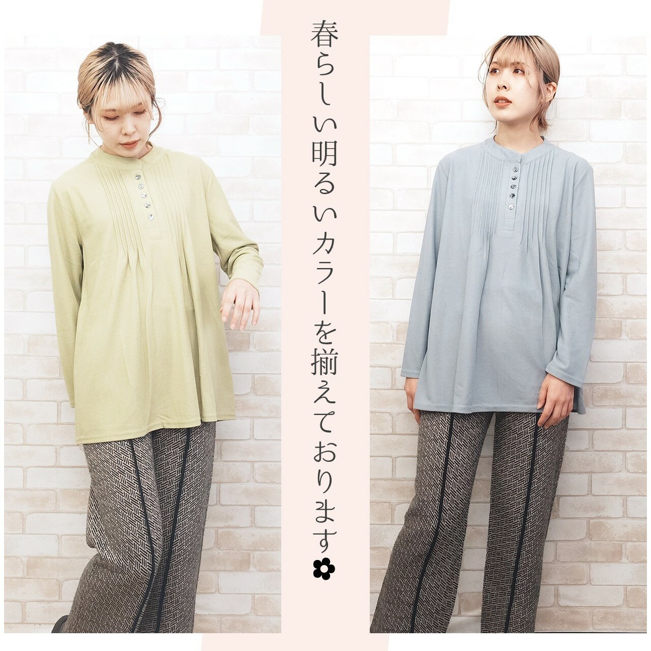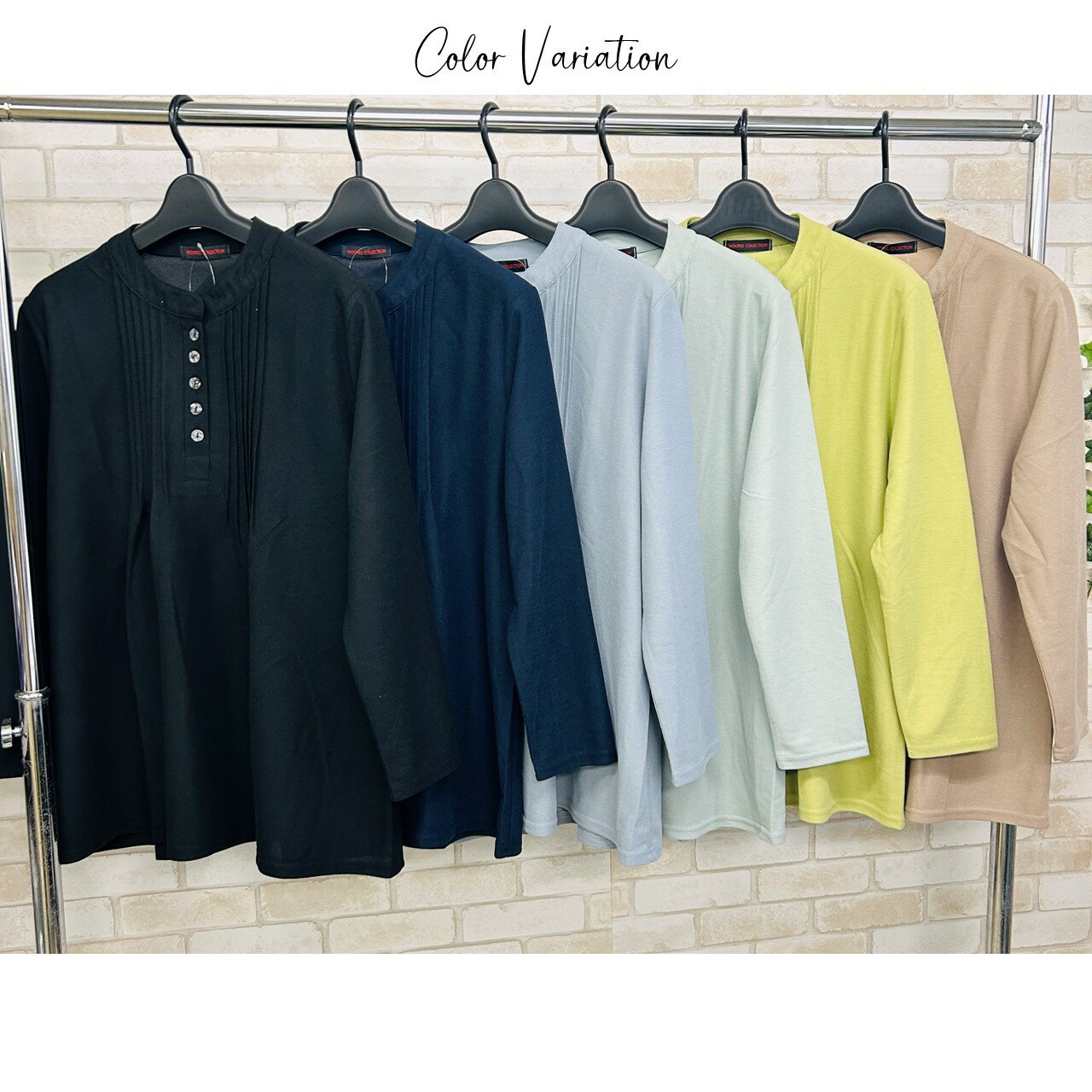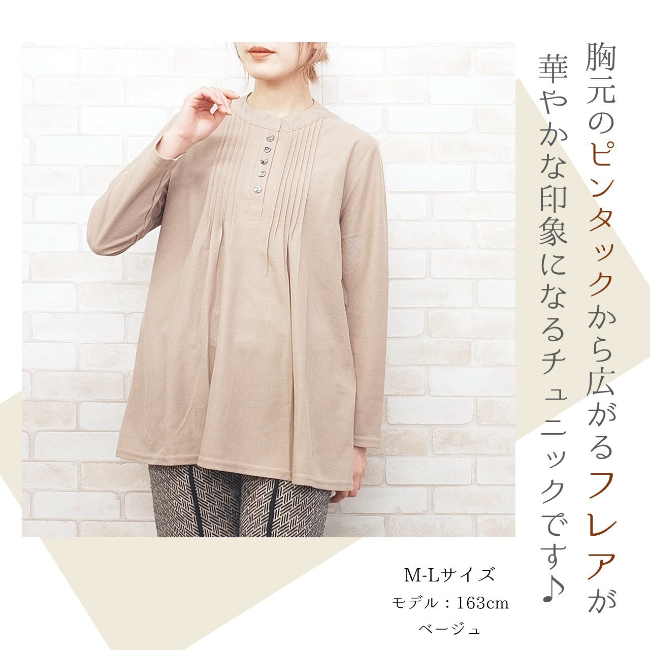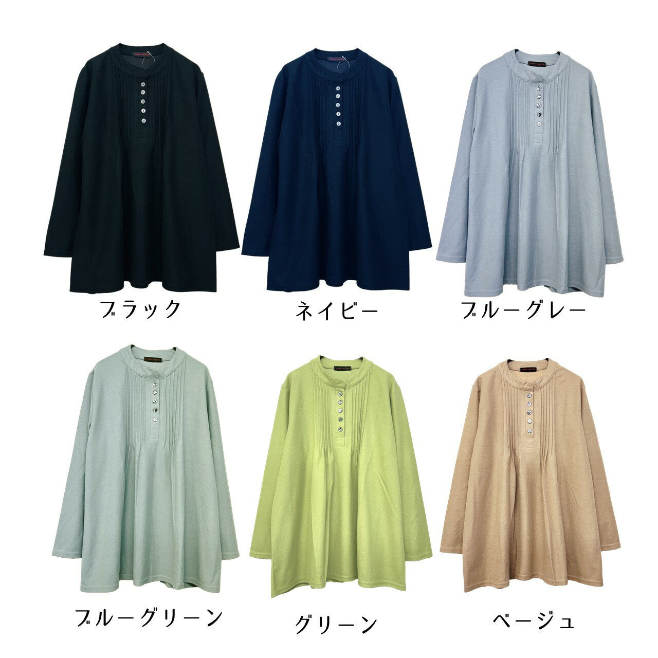 春カラー ピンタック チュニック 無地 レディース ミセス Aライン すそ広がり フリーサイズ M-L ロング丈 ロング 長袖 カラバリ豊富 プレゼント ギフト対応 体型カバー 送料無料 ネコポス配送