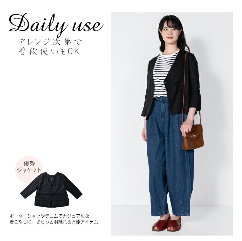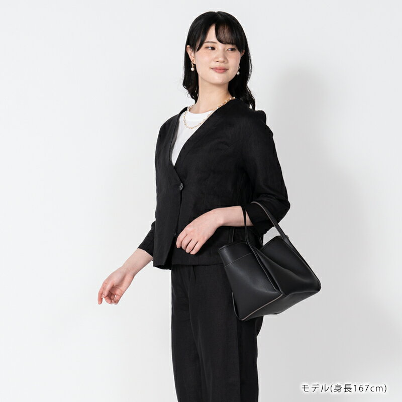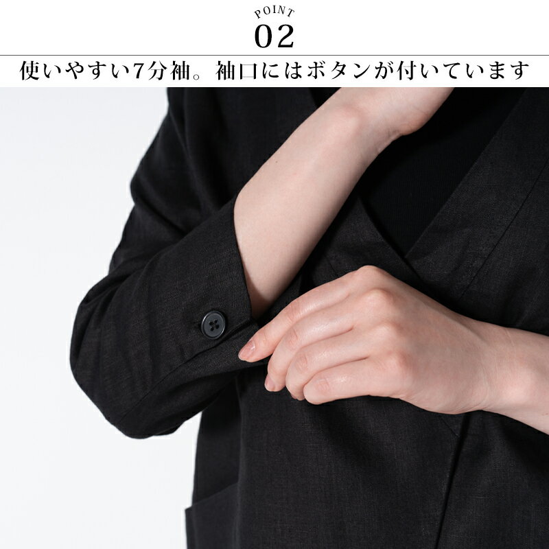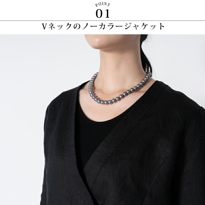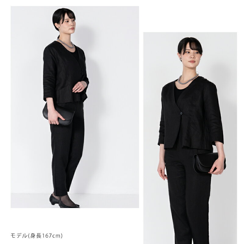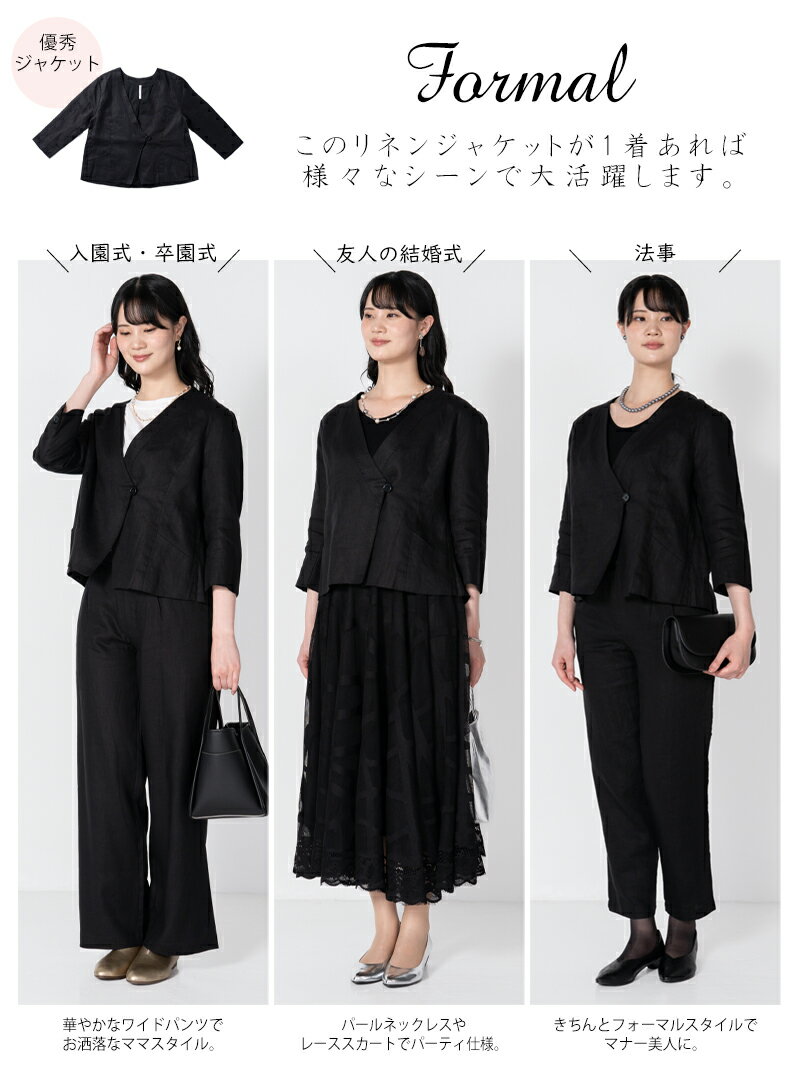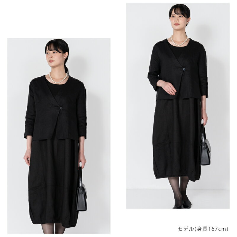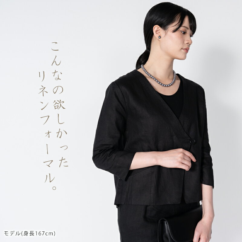 リネン ジャケット 七分袖 ブラックフォーマル セレモニー 送料無料 ノーカラー カシュクール 無地(入園式・入学式・卒園式・卒業式・喪服・礼服・黒・冠婚葬祭)【こちらの商品はジャケットのみの販売になります。】