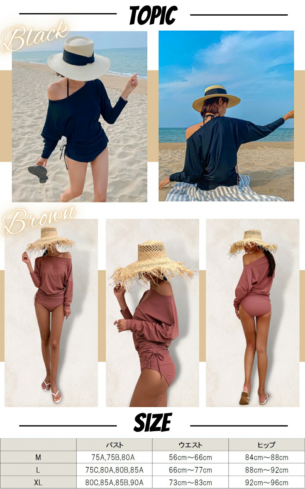 [panda store] 水着 レディース ラッシュガード 長袖 体型カバー 3点セット ビキニ ブラック
