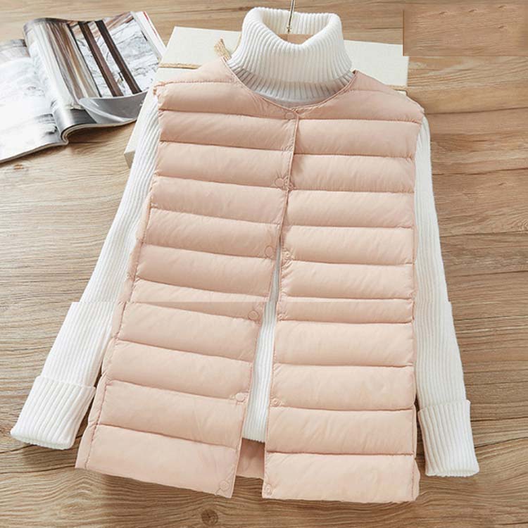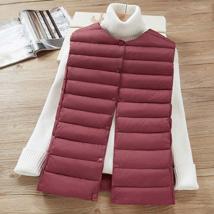 ダウンベスト レディース インナーダウン ラウンドネック 軽量 ライトダウン あったか ダウンジャケット 秋 冬 アウター 中綿ベスト 上着 ショート丈 ノーカラー 羽織り インナー ノースリーブ ジレ