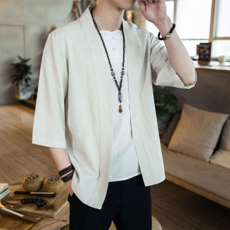 夏服 カジュアル サマーカーディガン 甚平風 開襟シャツ 通気性 和式 リネン風 七分袖 無地 綿麻風 カーディガン 羽織り 和風 薄手 お洒落 シャツ 軽量 メンズ ジャケット 涼しい 大きいサイズ 体型カバー ゆったり シャツ