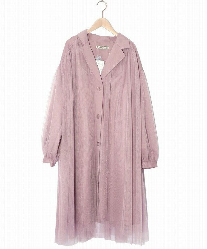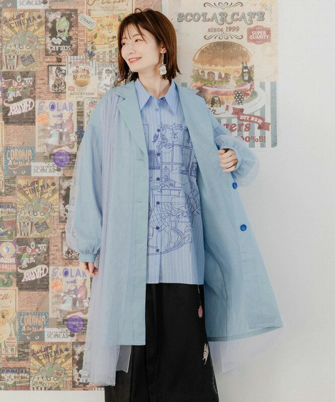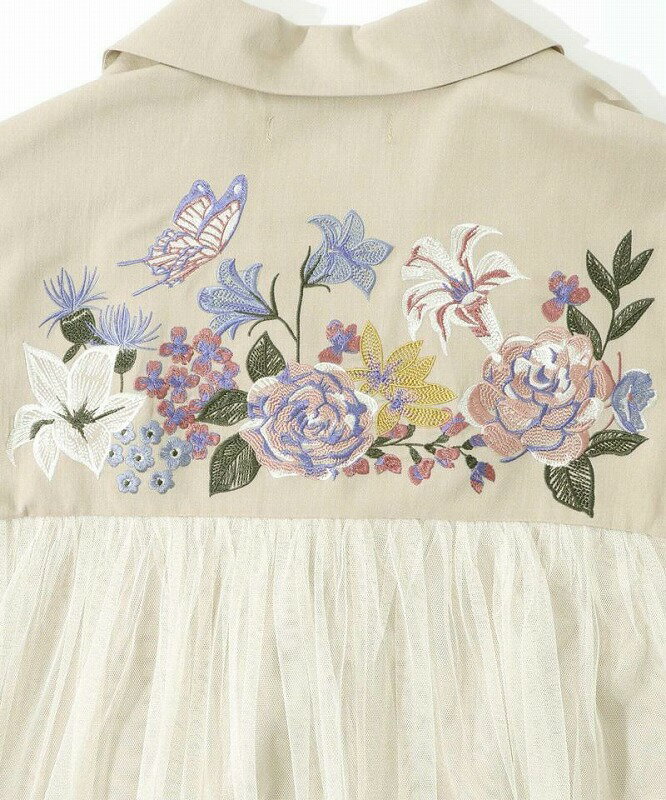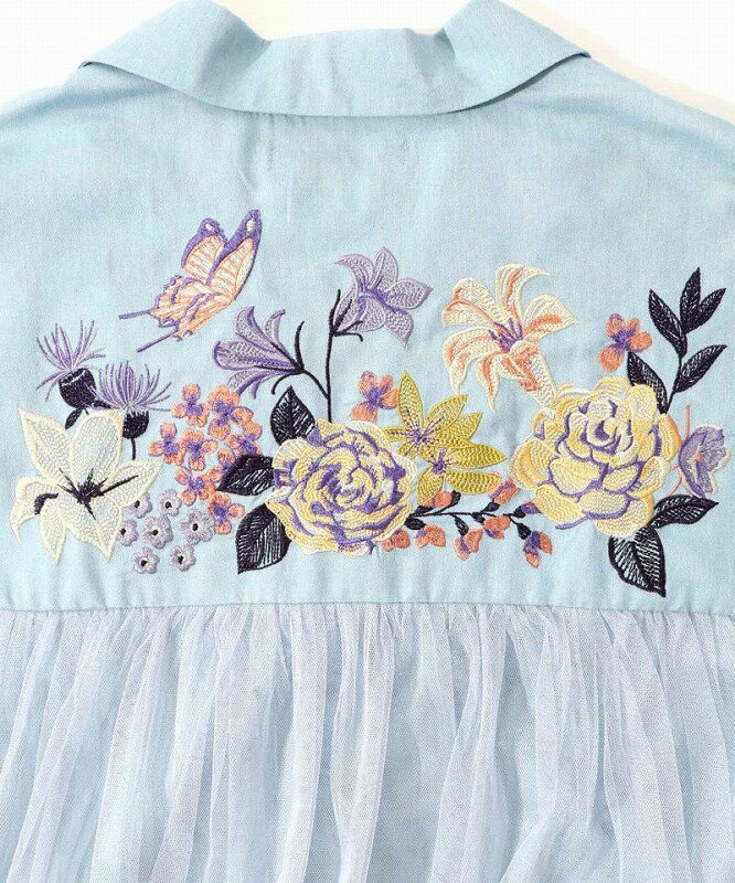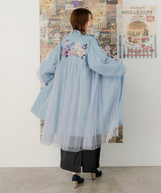 ★SALE★【is ScoLar イズ スカラー】551206 花蝶刺繍チュール重ね 布帛orダンガリーコート アウター カジュアル フェミニン ガーリー 原宿系 個性的【パッパドゥドゥ】