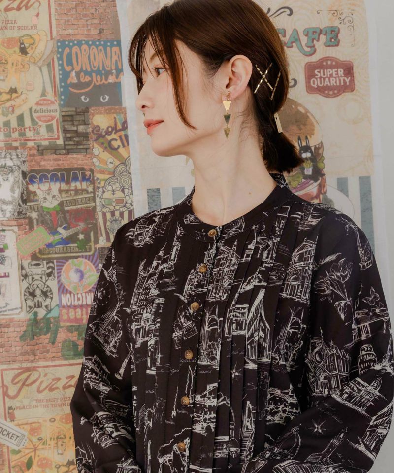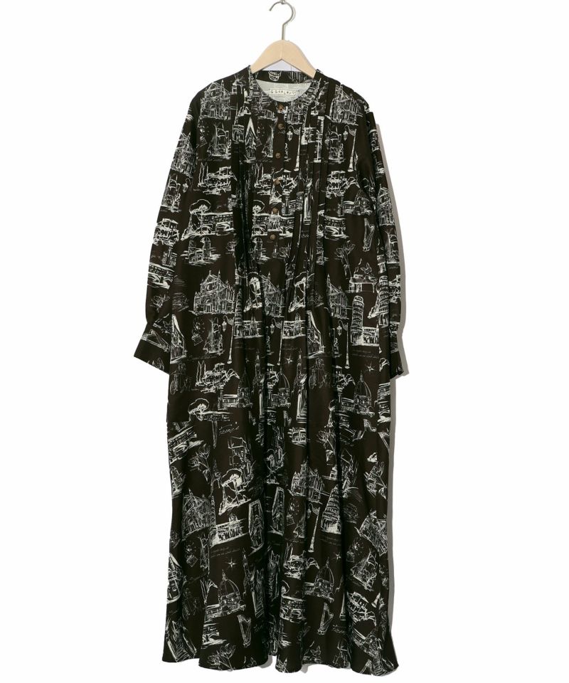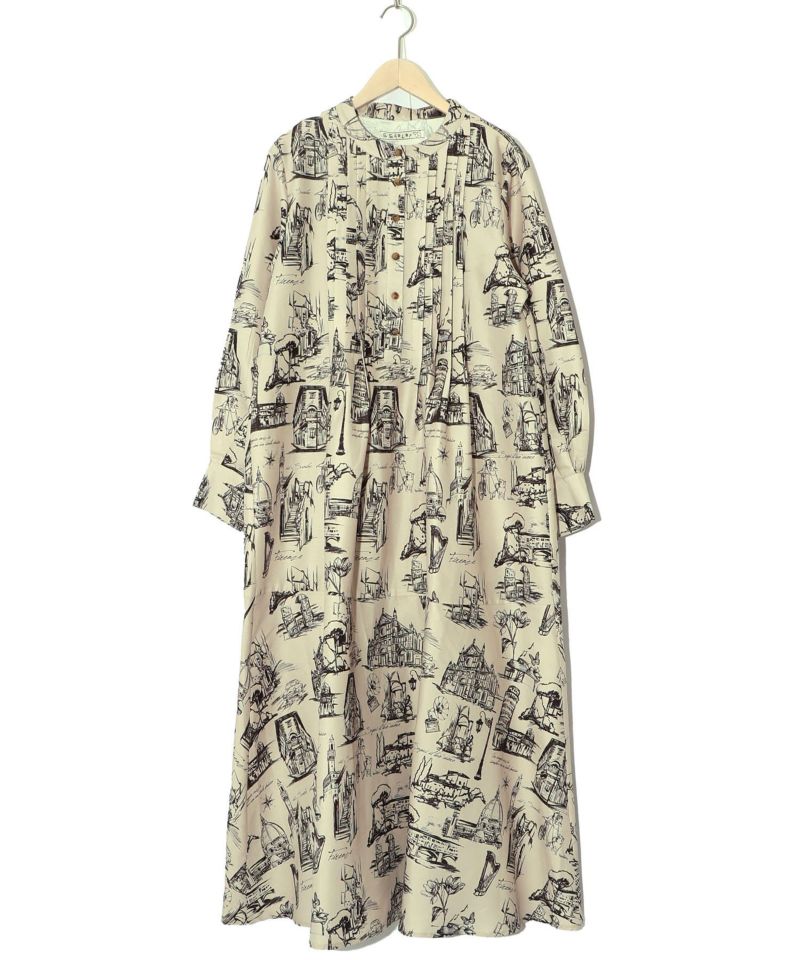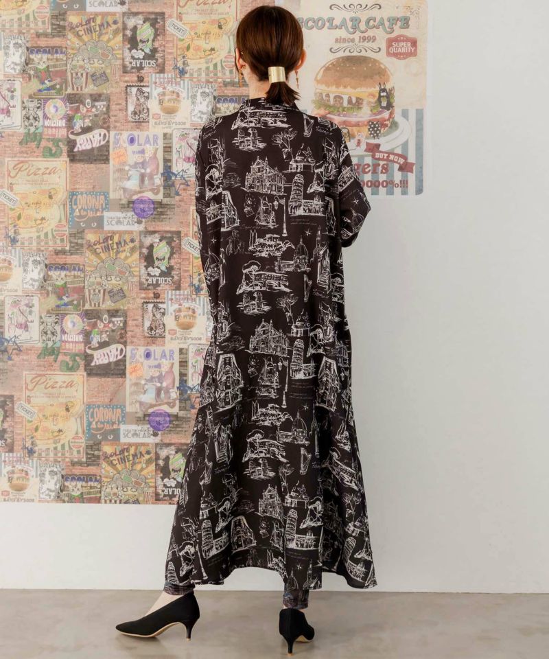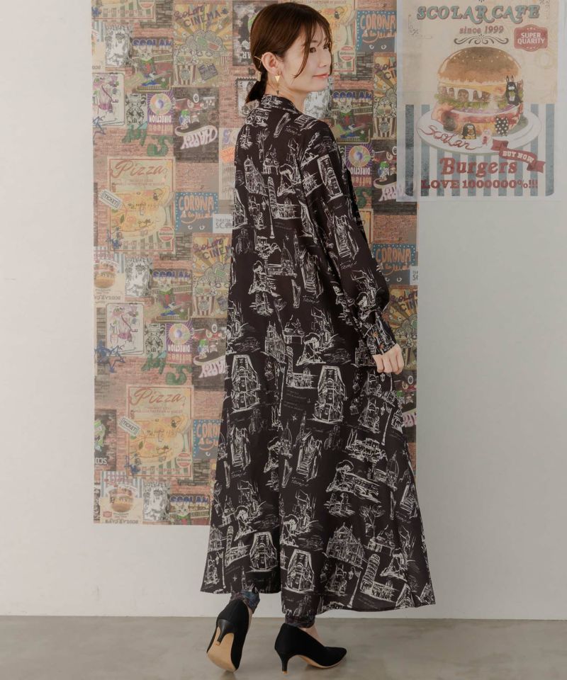 ★新作★【is ScoLar イズ スカラー】 551208 フィレンツェの街並み柄 ロングワンピース カジュアル シック フェミニン ガーリー 原宿系 個性的【パッパドゥドゥ】