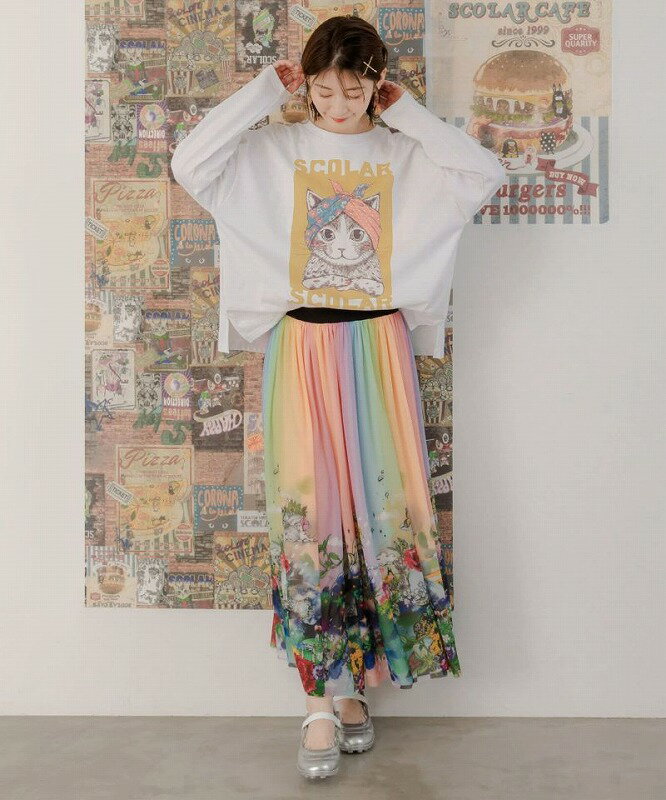 ★新作★【ScoLar スカラー】151641 アニマルPOP柄・花柄グラデーションスカート ボトムス カジュアル ガーリー フェミニン 原宿系 個性的【パッパドゥドゥ】