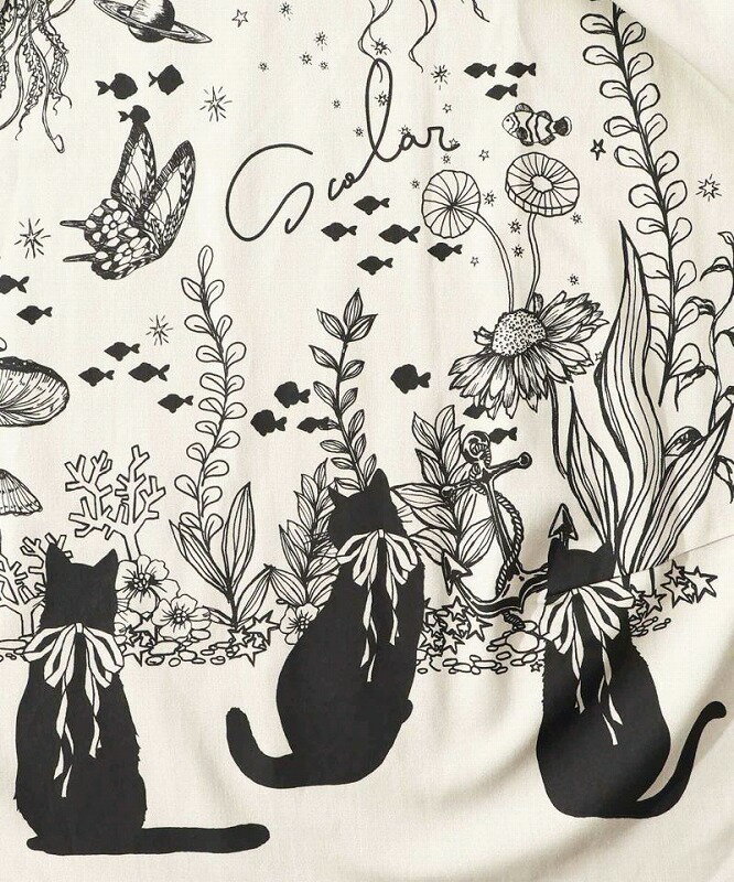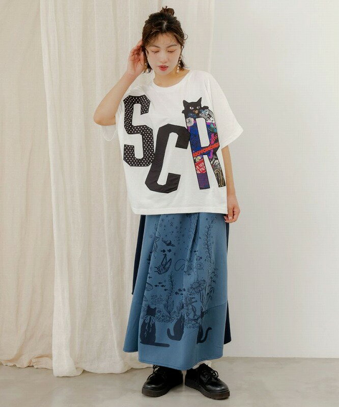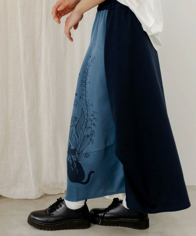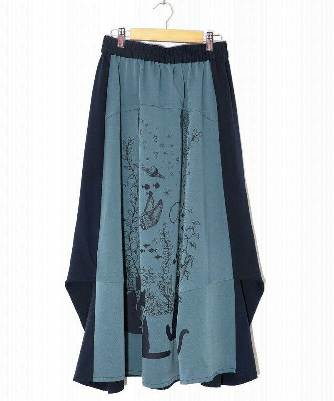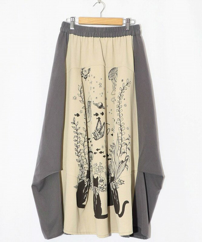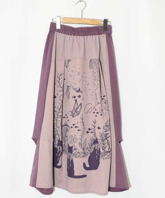 ★SALE★【ScoLar スカラー】152605 水槽を眺めるネコ柄 切替スカート ボトムス カジュアル レトロ ガーリー 原宿系 個性的【パッパドゥドゥ】
