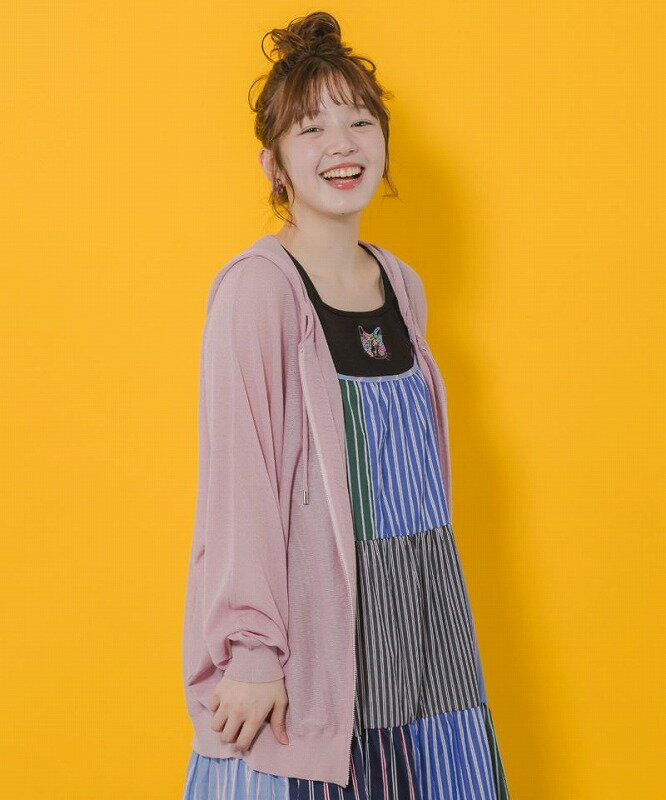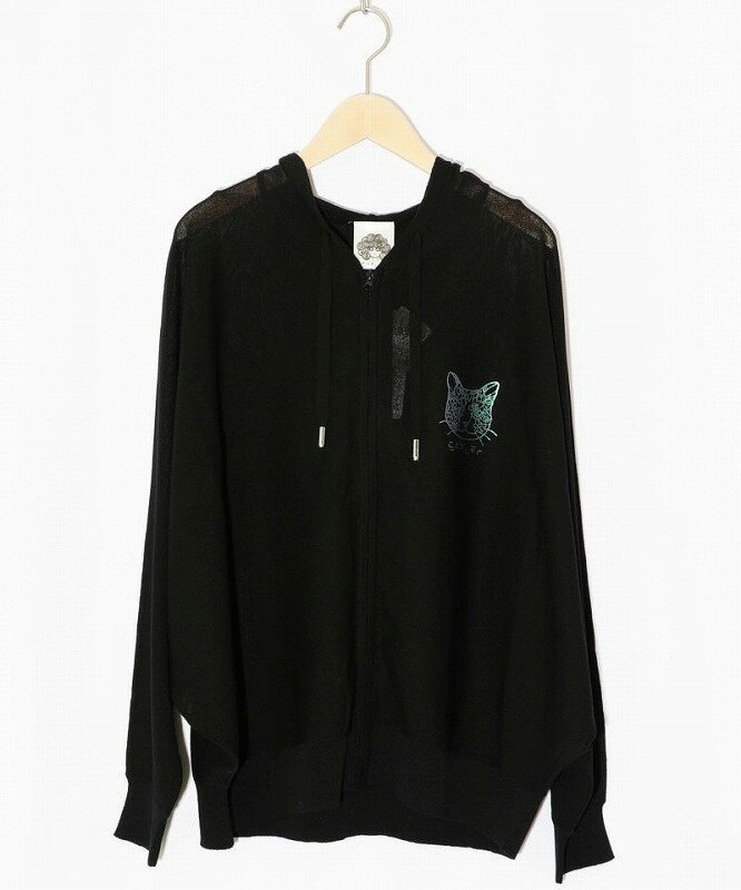 ★新作★【ScoLar スカラー】152659 ネコ柄接触冷感ニットパーカー トップス 羽織り カジュアル ガーリー 猫 原宿系 個性的【パッパドゥドゥ】