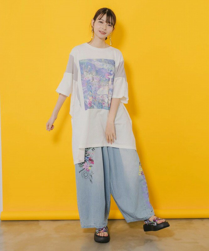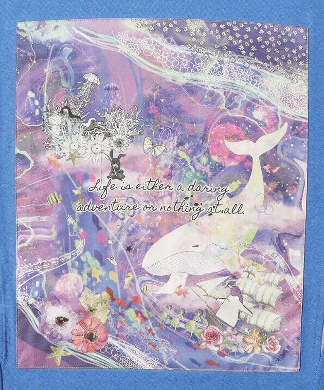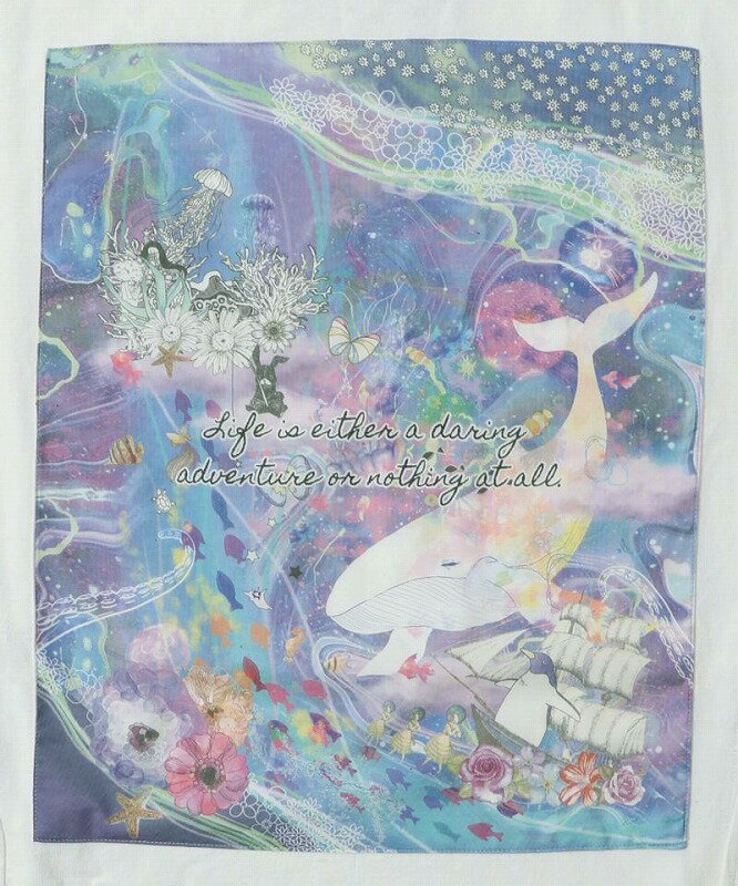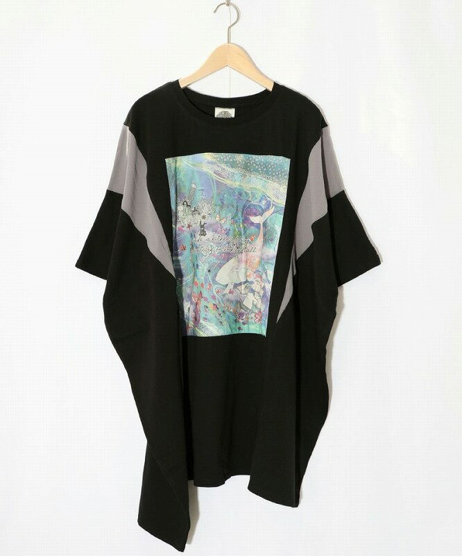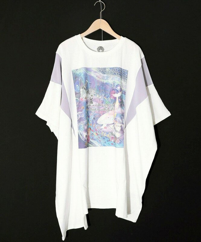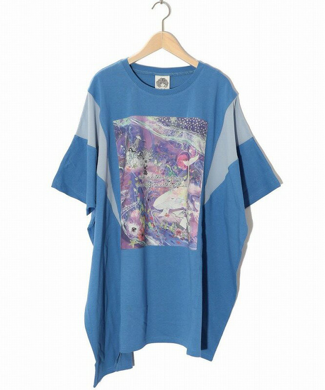 ★新作★【ScoLar スカラー】152667 メルヘンな海とクジラ柄 シフォン切替チュニック トップス カジュアル ガーリー 原宿系 個性的【パッパドゥドゥ】