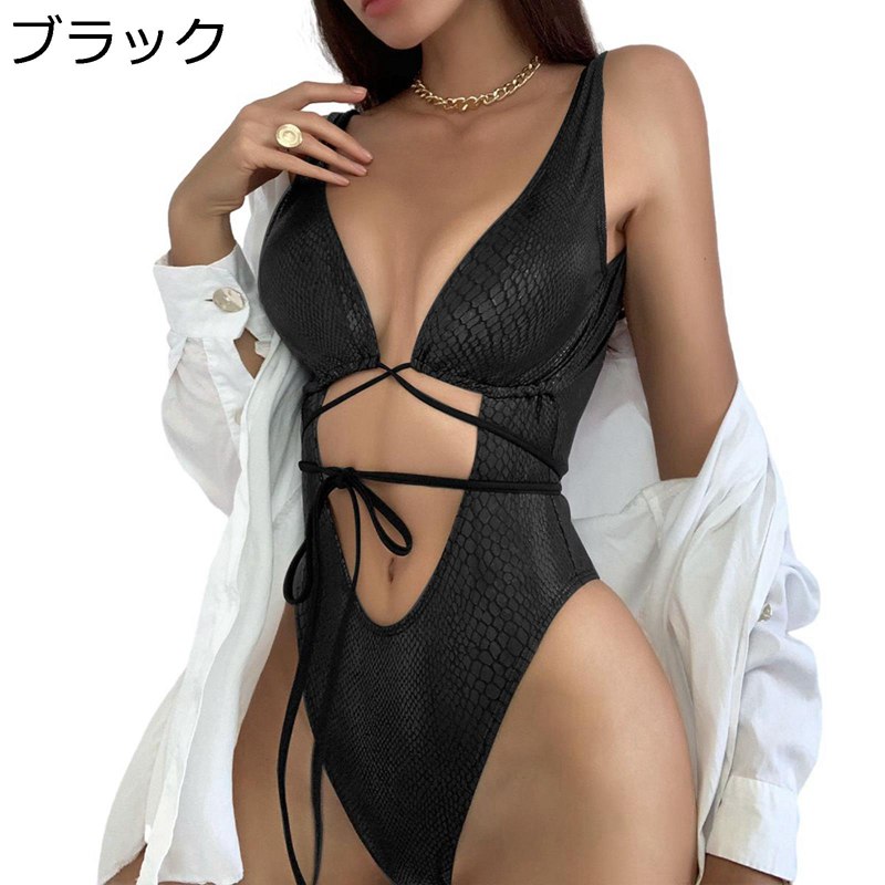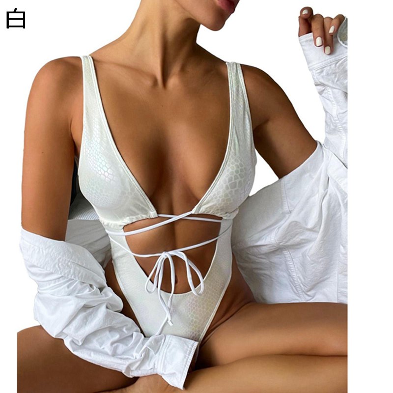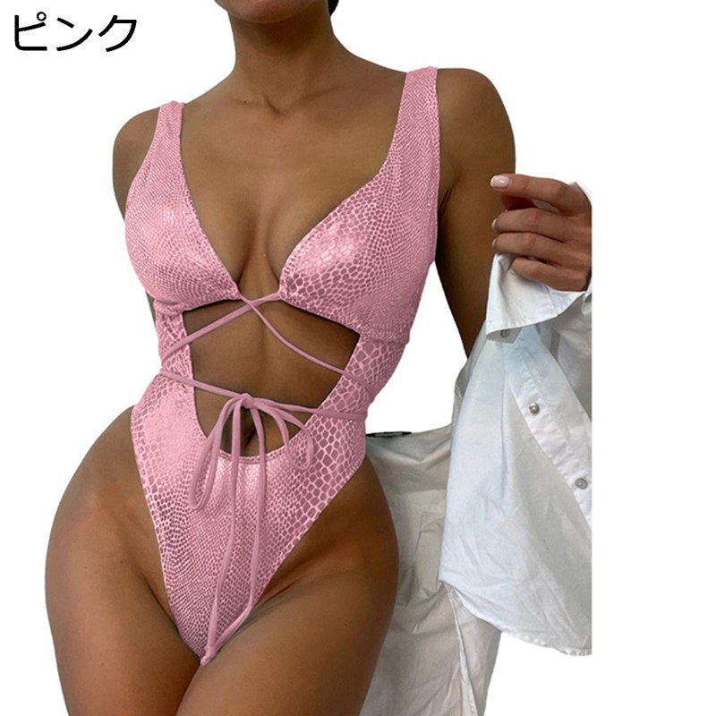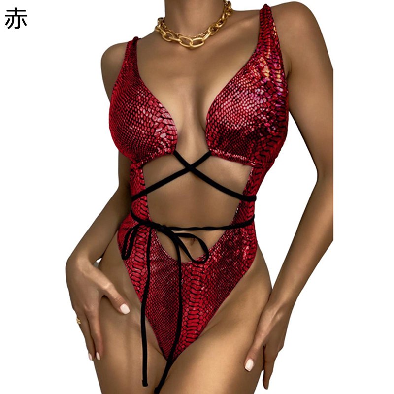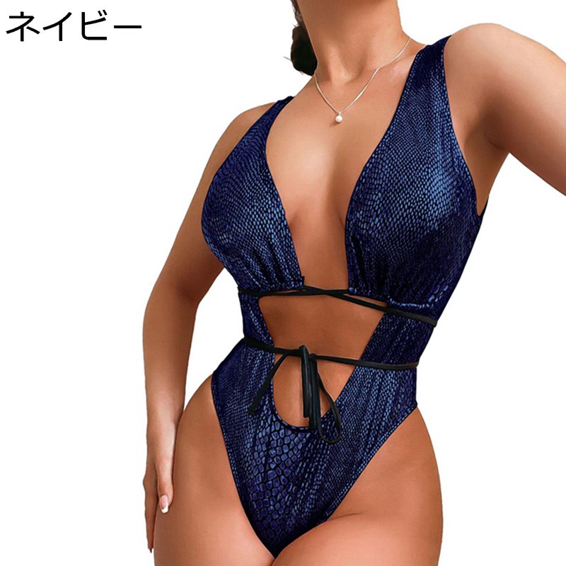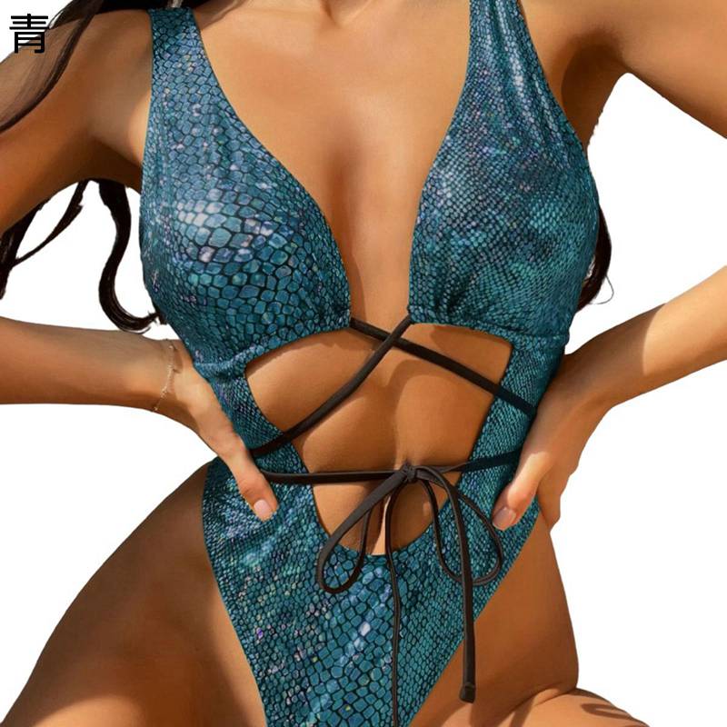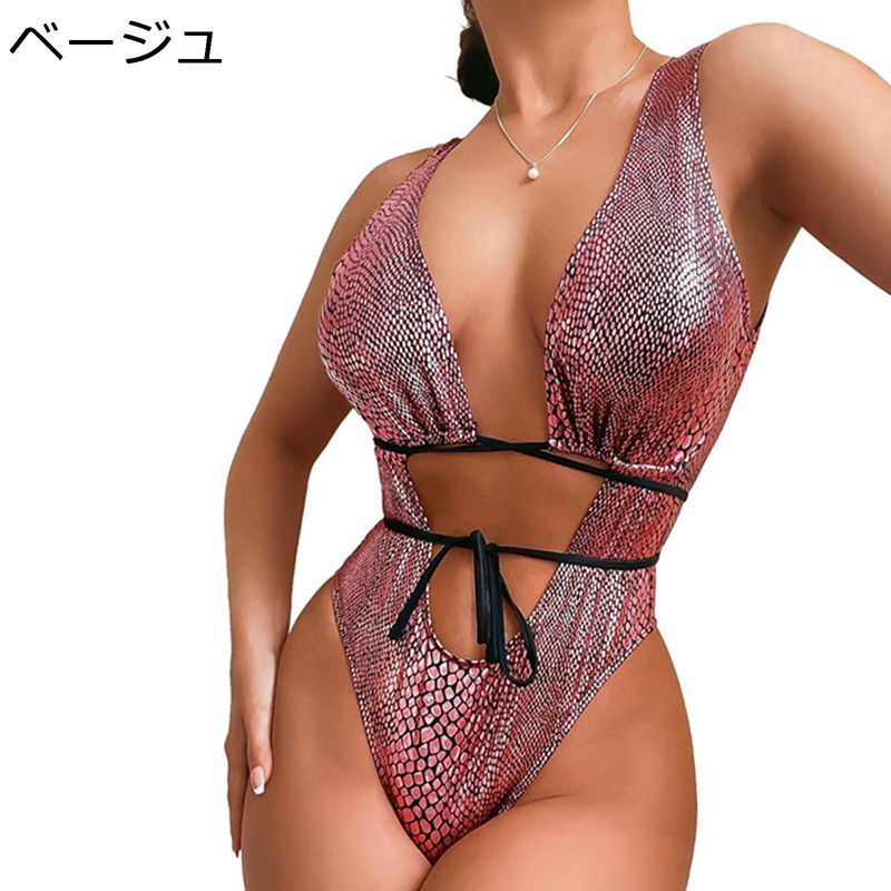 モノキニ水着 レディース オールインワン 蛇紋様 深いVネック 美バスト クロス エロ気溢れる 背中開き フロントカッティング スーパーハイレグ セクシー ロンパース 温泉 海水浴 水泳 欧米風