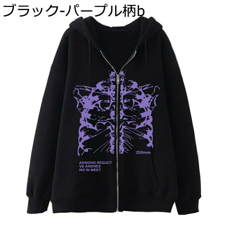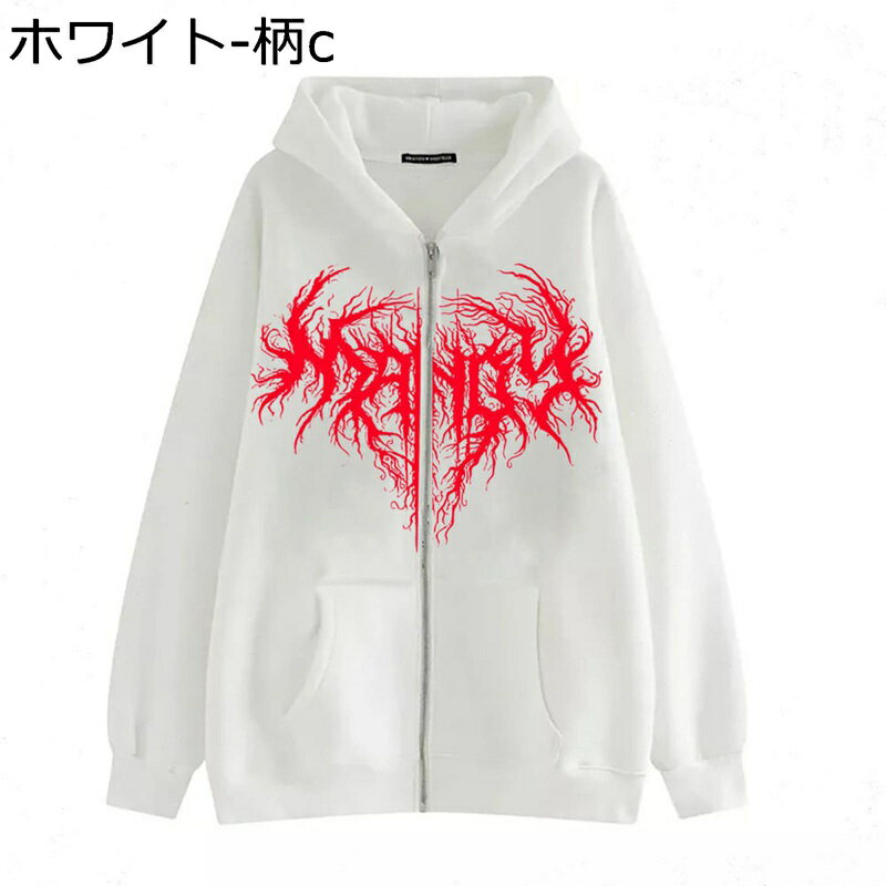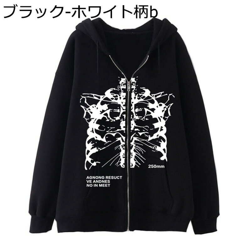 ゴシックパンク メンズ パーカー ジップアップ サブカル プリント スウェット トレーナー レディース 大きいサイズ ジャケット スポーツ フード 付き オシャレ カジュアル カーディガン コート ジャージ 春秋冬服 S-3XL
