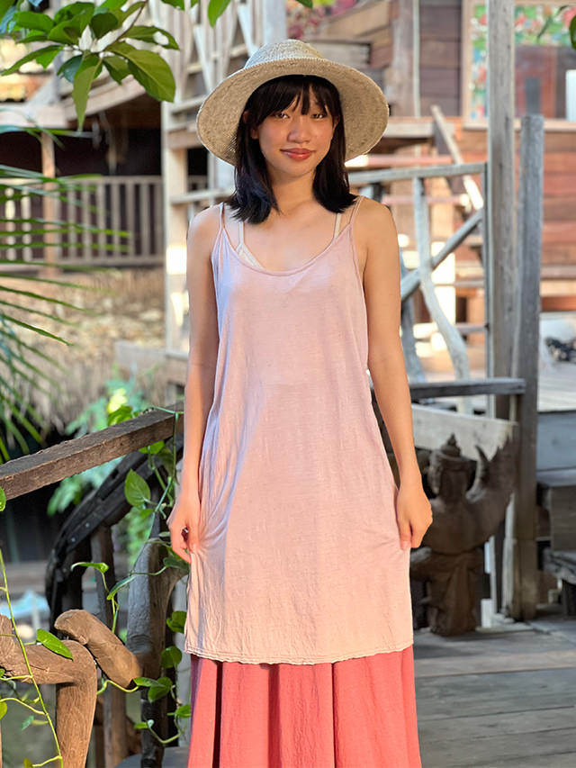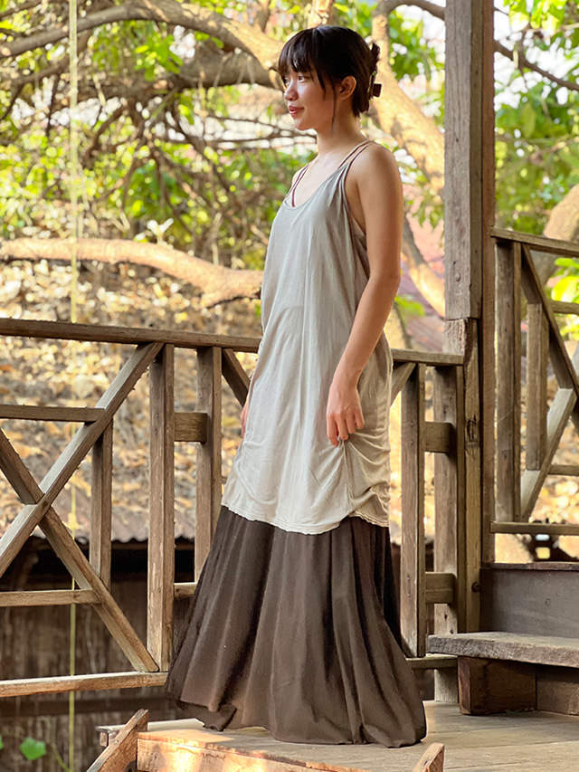 asama ヘンプコットン テロテロ キャミ チュニック<草木染め>【メール便OK】麻 レディース エスニック アジアンファッション リゾートコーデ