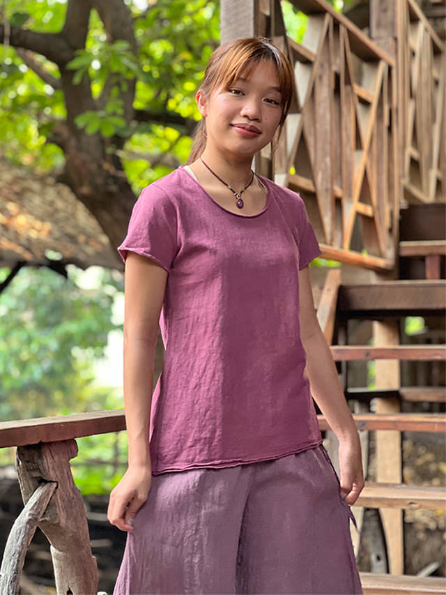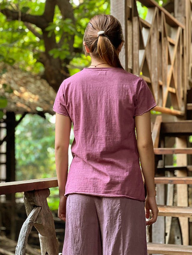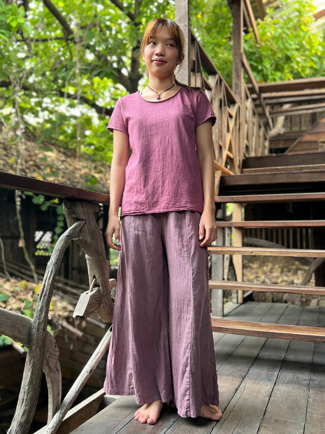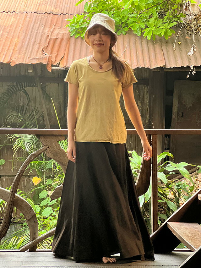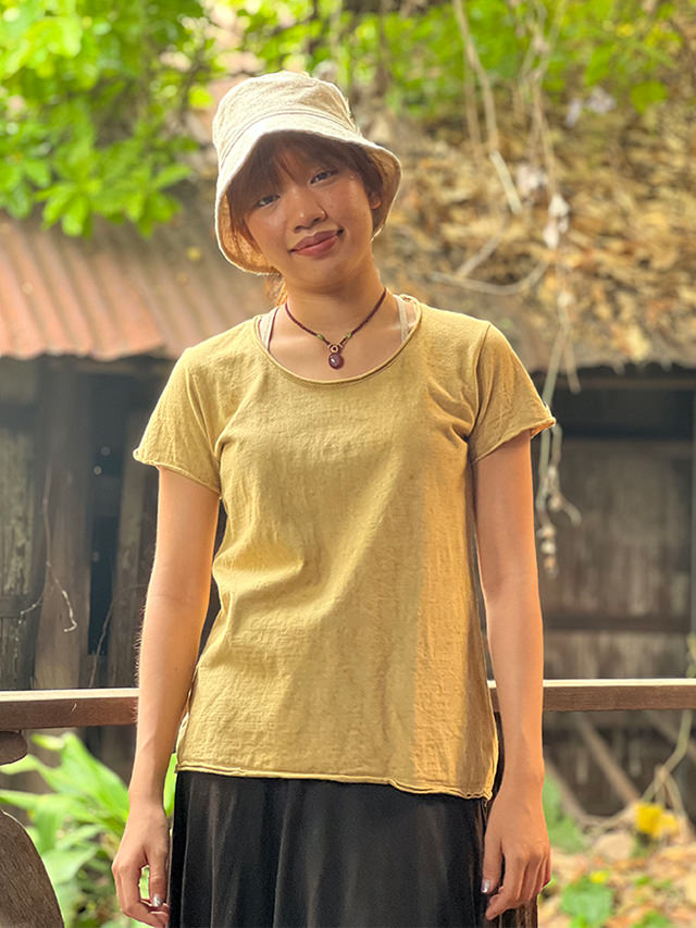 asana ヘンプコットン 厚手 スリムTシャツ<草木染め> 半袖 レディース エスニック ファッション アジアン