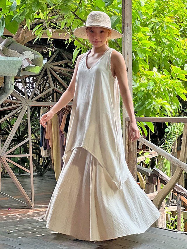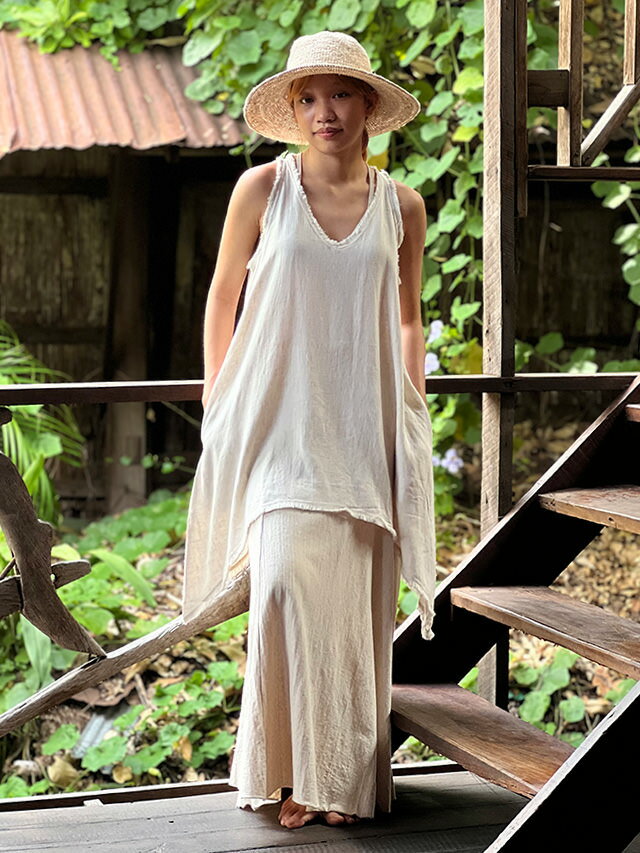 asana ヘンプ100% テロテロ ノースリーブ チュニック<きなり>【送料当店負担】 おしゃれコーデ エスニック アジアン ファッション