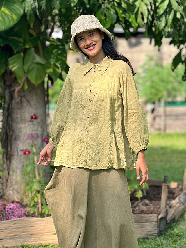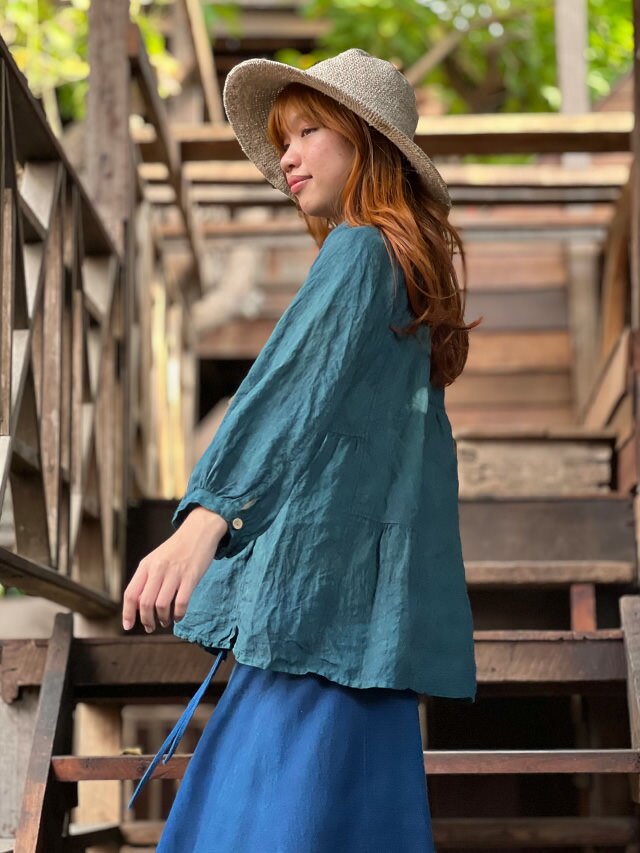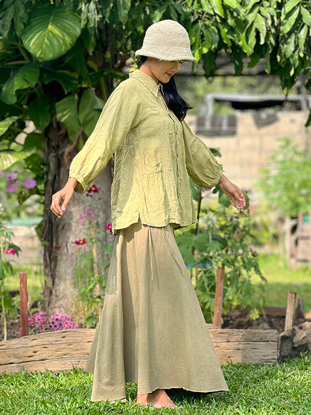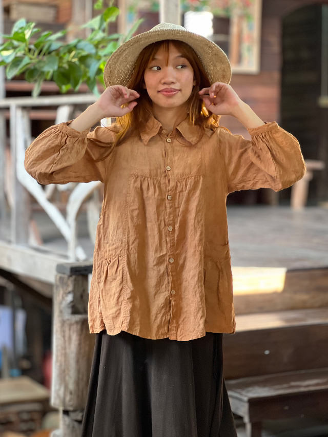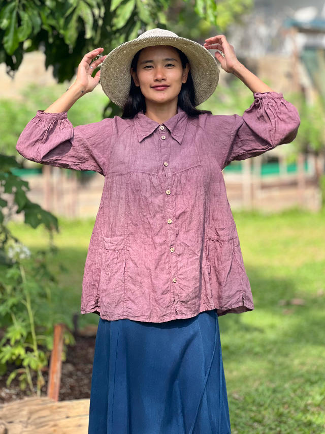 asana x chewin'bacco ヘンプ100% 切り替え ギャザー ジャケット<草木染め>【送料当店負担】 麻 エスニック アジアンファッション レディース リゾートコーデ