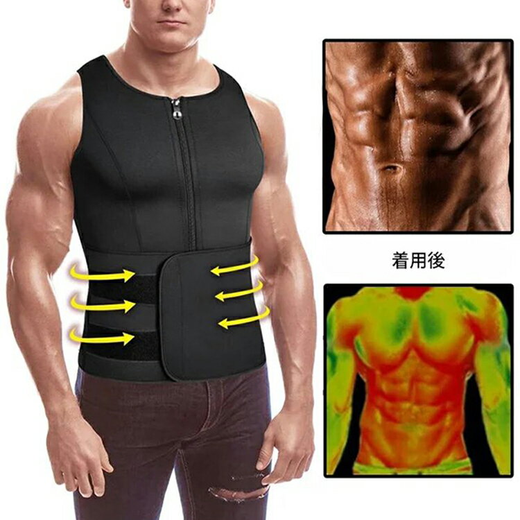 サウナスーツ メンズ トレーニング ダイエット お腹周り 脂肪燃焼 引き締め 超発汗 着圧 インナー タンクトップ 上着 大きいサイズ メタボ解消 コロナ太り ぽっこりお腹を引き締め くびれ 代謝アップ 洗えるので便利 お腹 大量発汗 洗濯可能