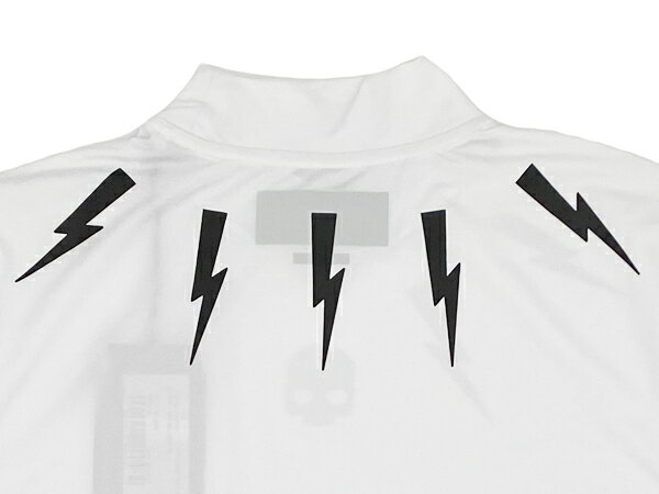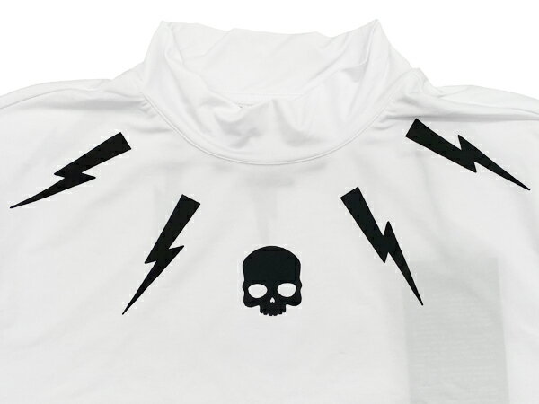 ハイドロゲン ゴルフ ポロシャツ HYDROGEN GOLF G00034 001 WHITE GOLF ROLL NECK TEE ブラック スカル絵柄 稲妻絵柄 ロゴ入り メンズ向け ストレッチ ホワイト ロールネック Tシャツ メンズMサイズ