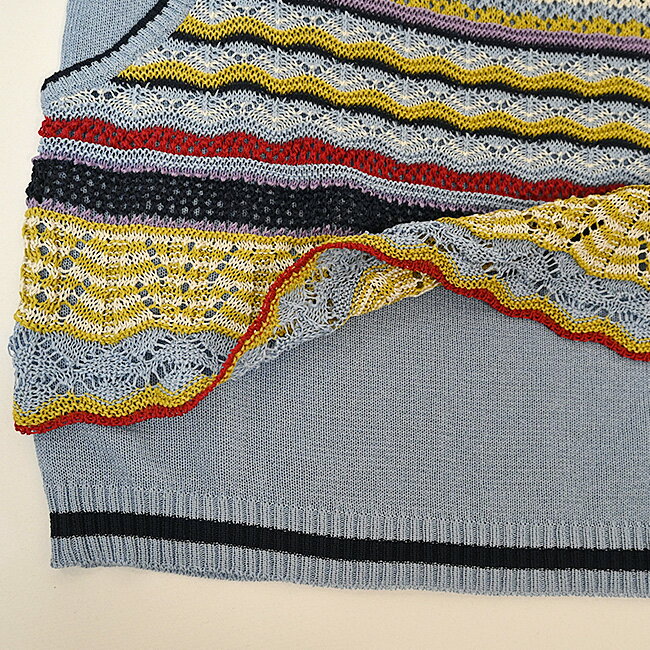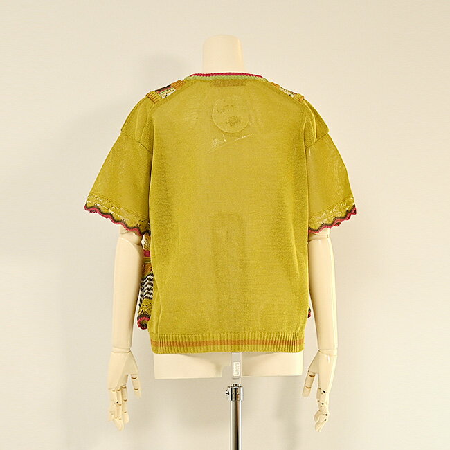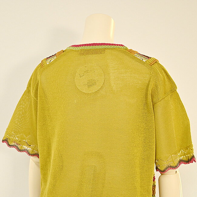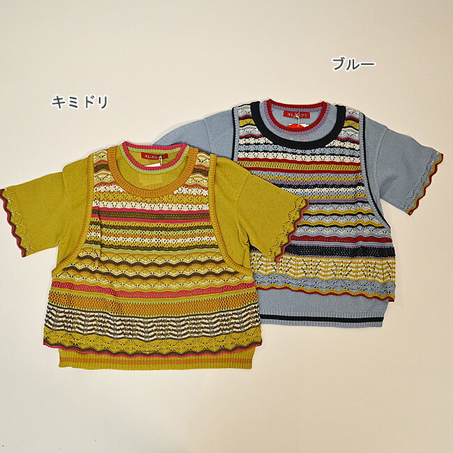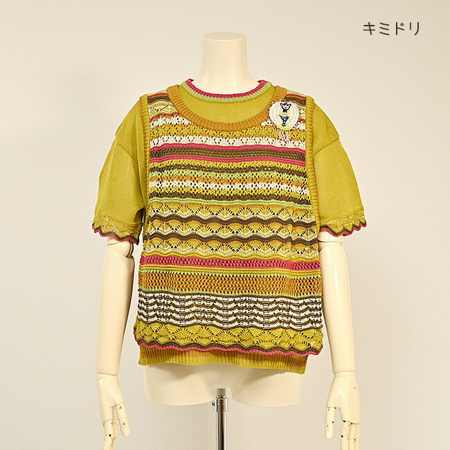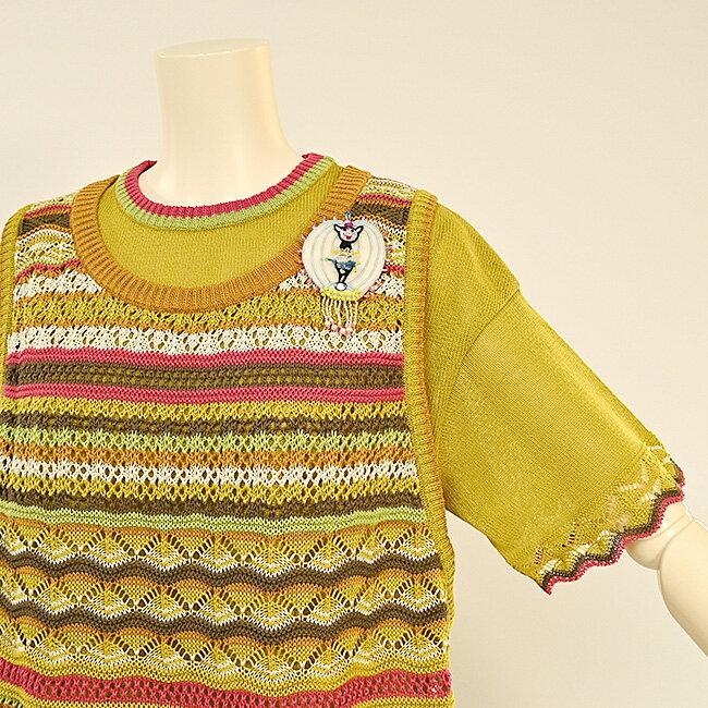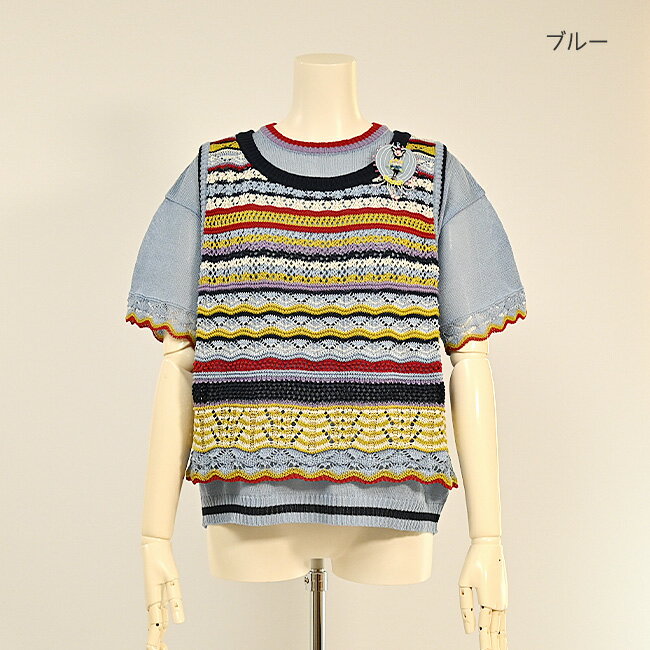 【 40%OFF SALE 】 オレボレブラ OLEBOREBLA アルベロベロ ぶたさん ブローチ ギマ糸 すかし柄 サマー ニット 2024夏 M ブルー キミドリ