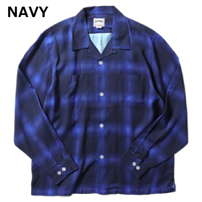 HOUSTON 40989 オンブレチェック長袖シャツ【ヒューストン OMBRE CHECK L/S SHIRT】メンズ レディース ミリタリー アウトドア カジュアル チェックシャツ オンブレシャツ キャンプ デイリーユース 普段使い コットン 長袖 グランジ 90年代