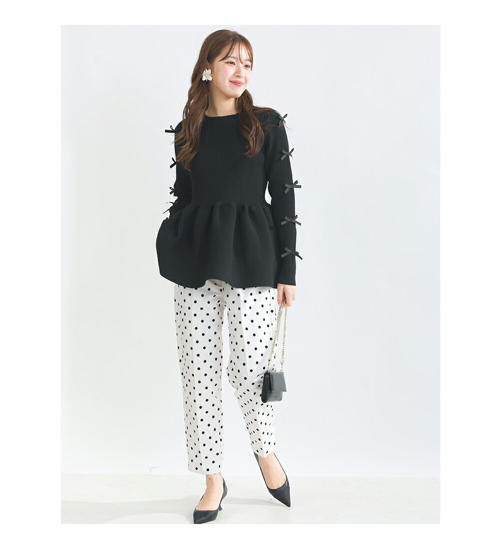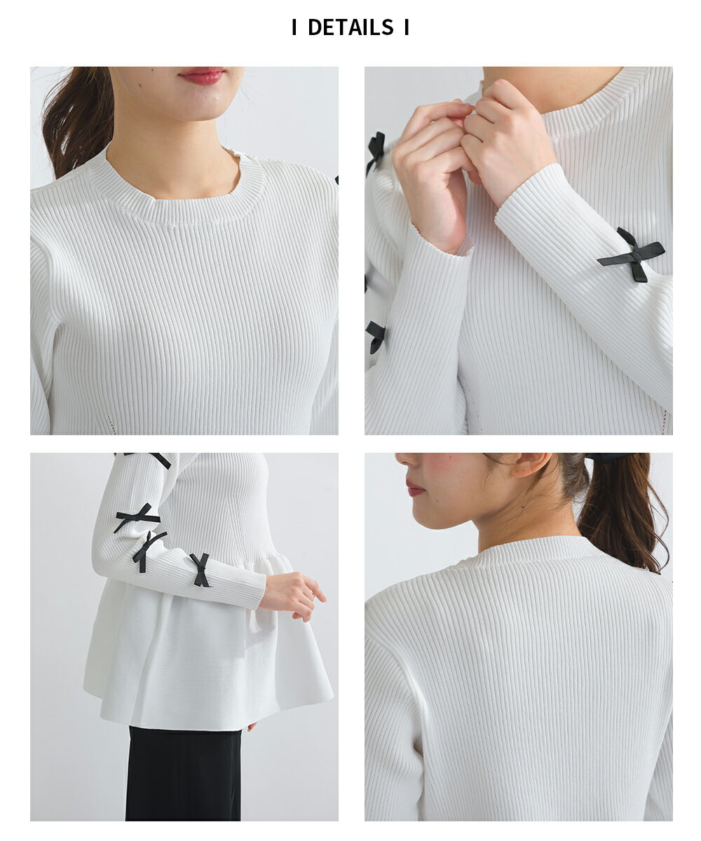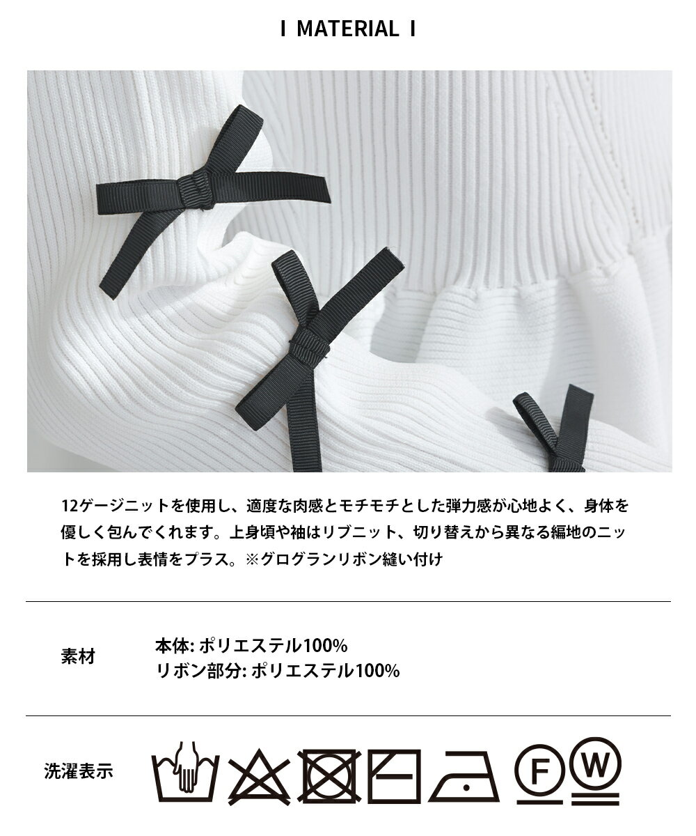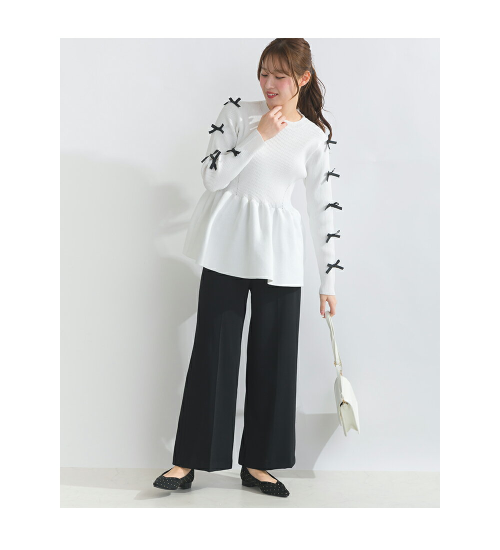 PICCIN PERLA 袖リボンペプラムニット 12ゲージ レディース トップス ニット ペプラム リボン オフホワイト ブラック
