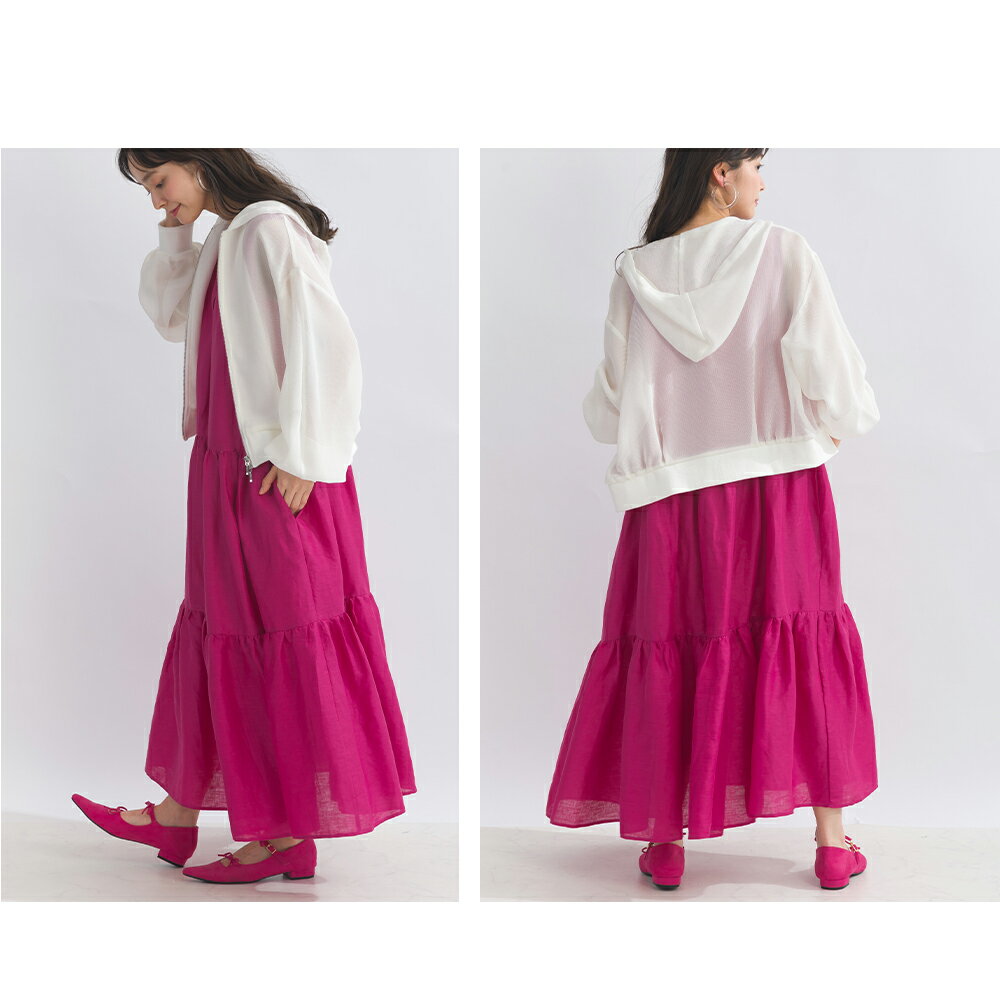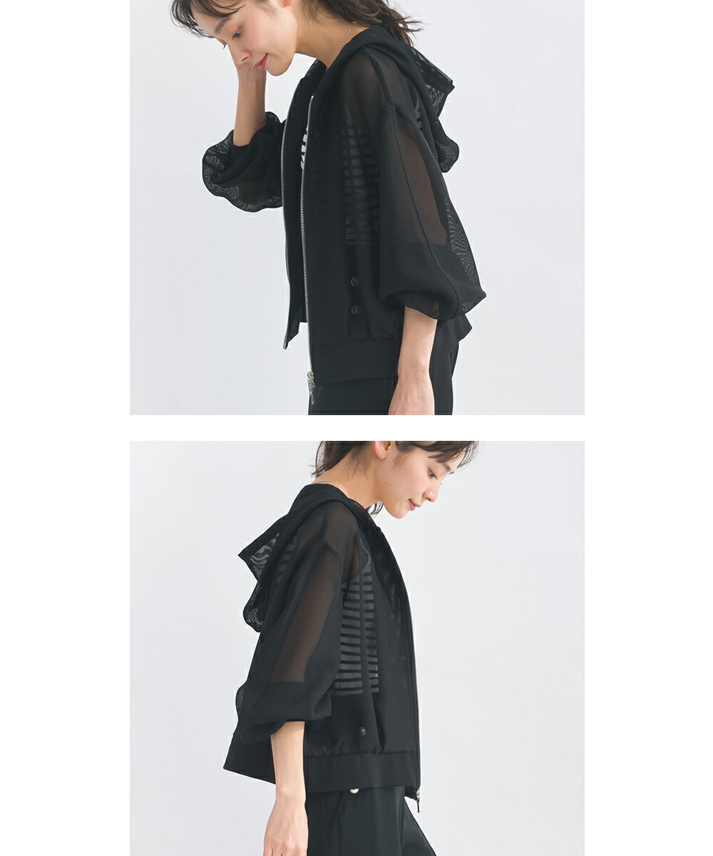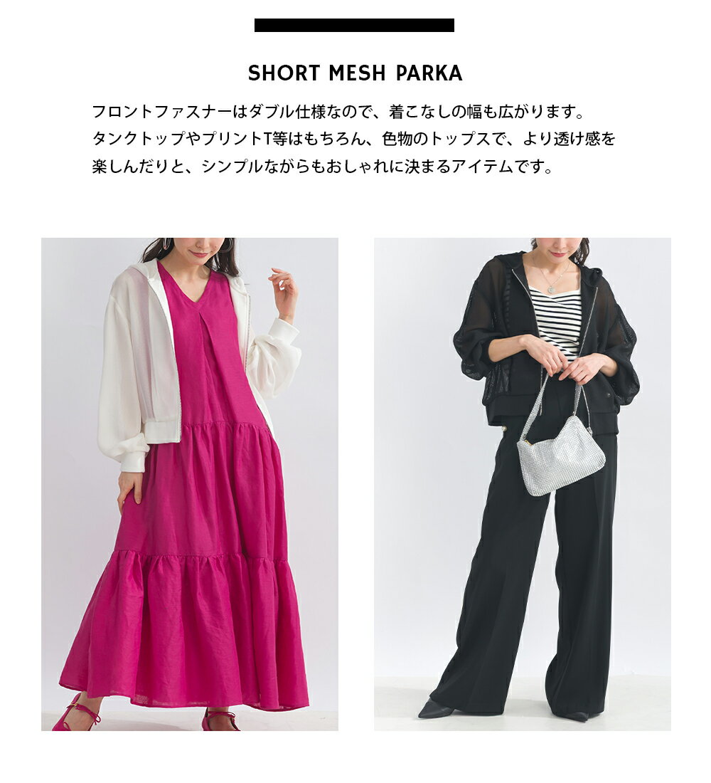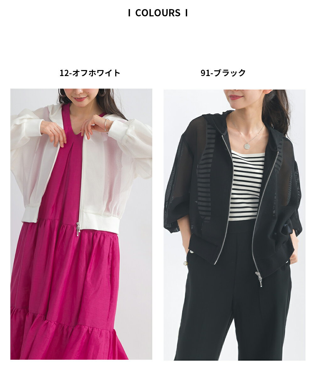 PICCIN メッシュパーカー レディース トップス パーカー メッシュ ショート丈 袖口リブ ダブルファスナー オフホワイト ブラック