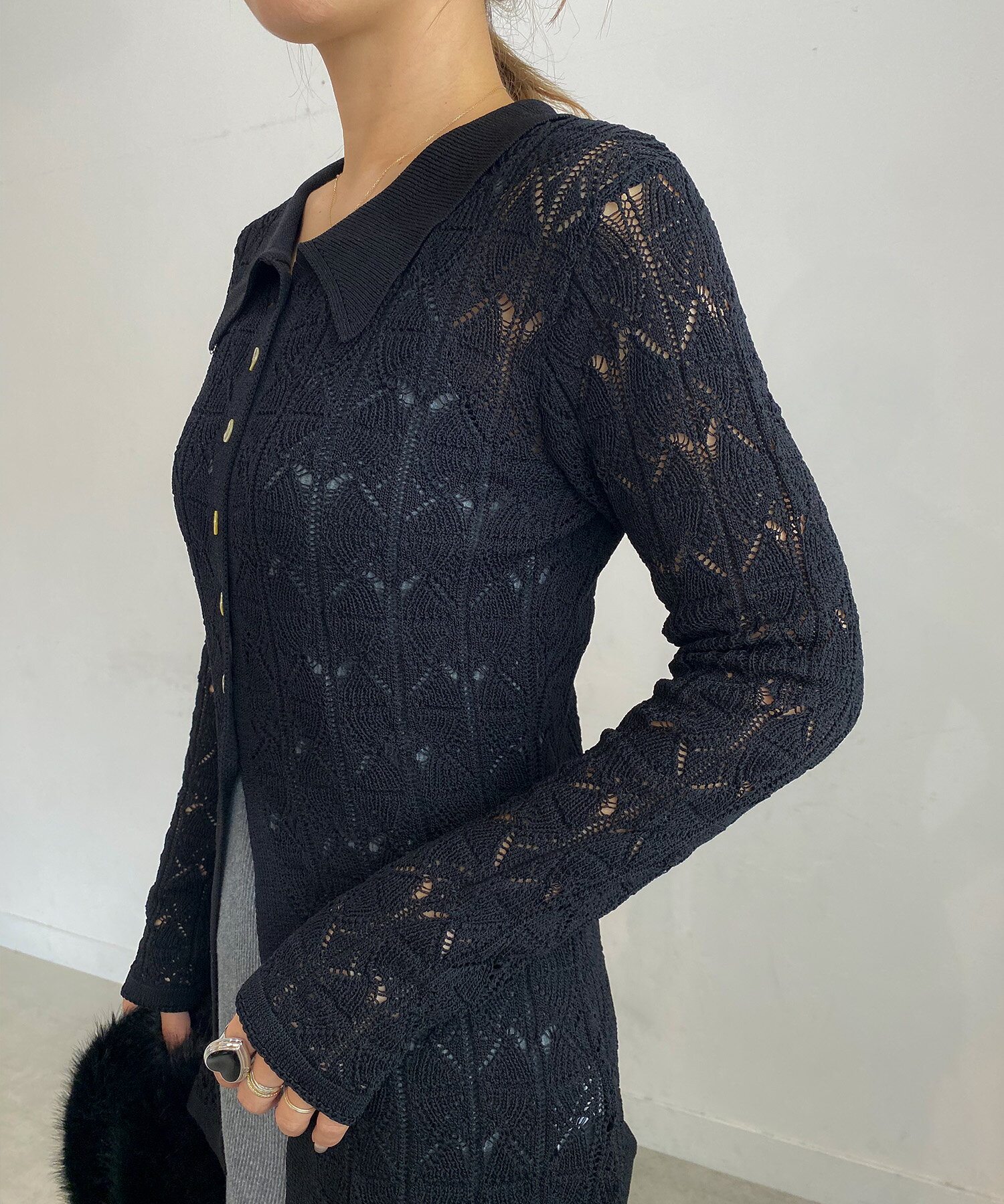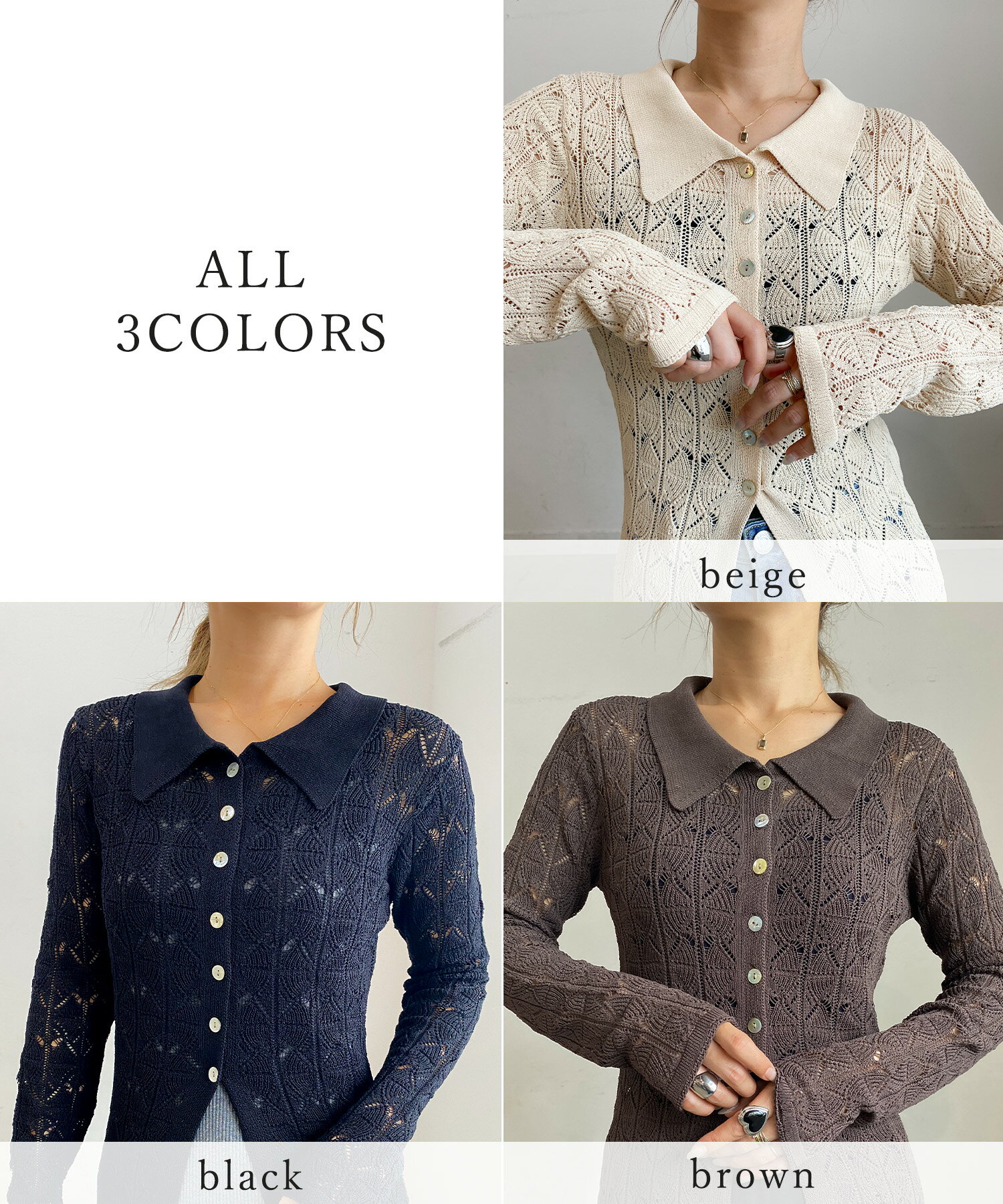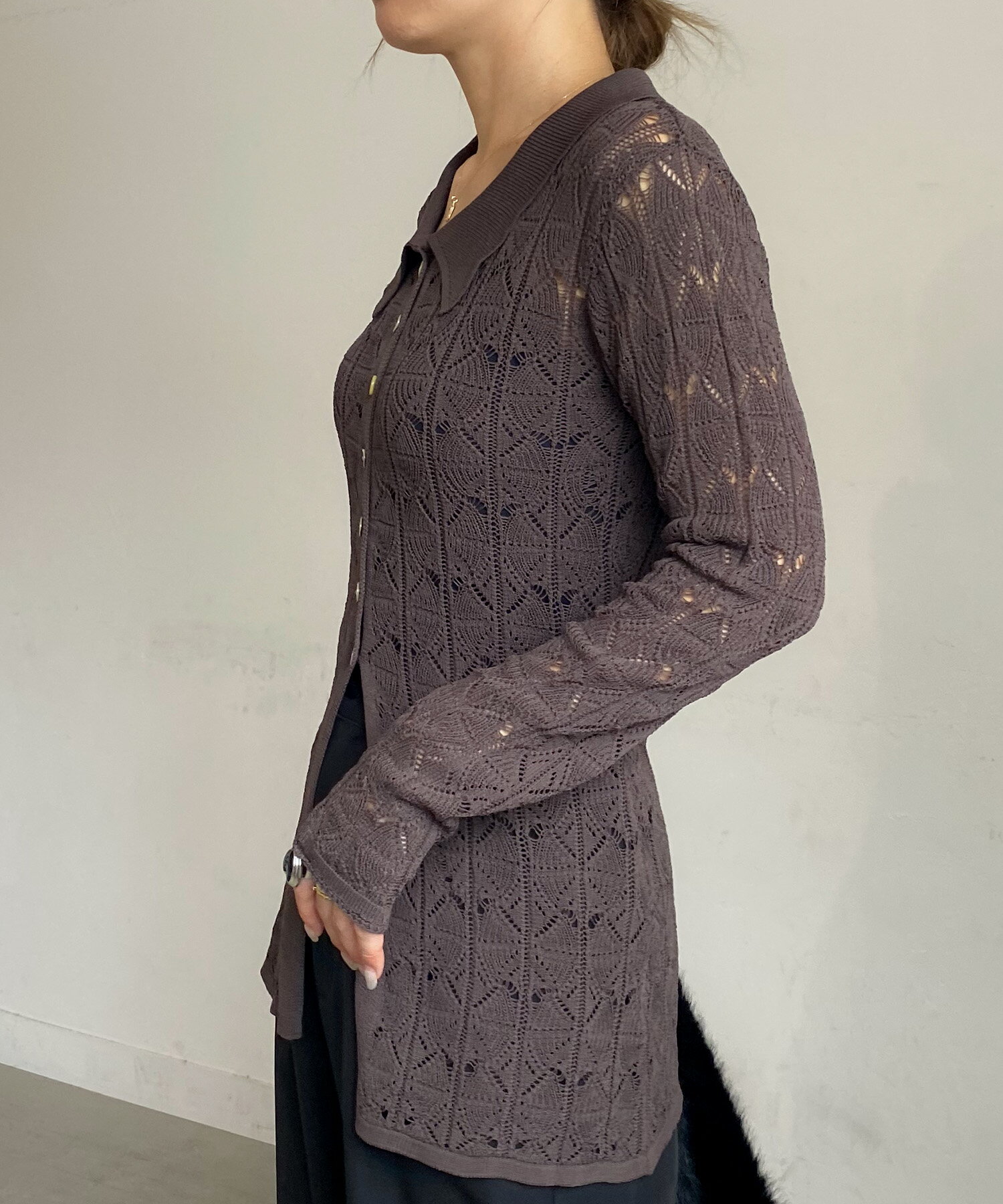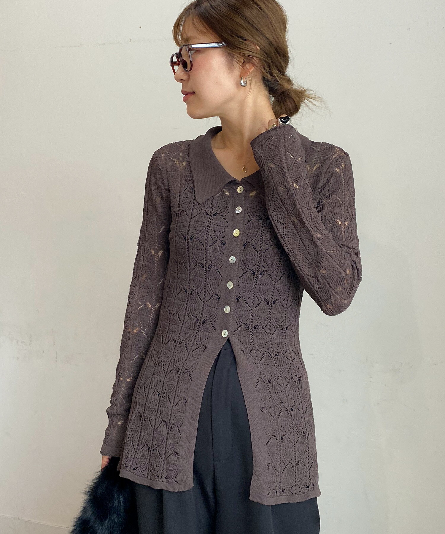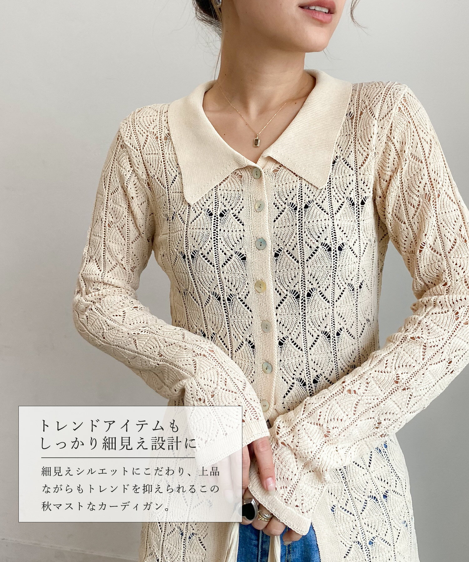 【B】かぎ編みカーディガン 透かし編みニット シアーニット カーディガン レイヤード インナー セーター 着回し 透け感 ロング アイボリー ブラウン ブラック レディース カジュアル 大人 PICHI ピイチ セレクト 7980 10.1