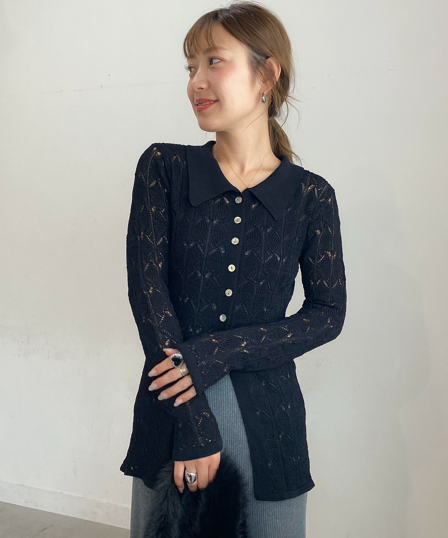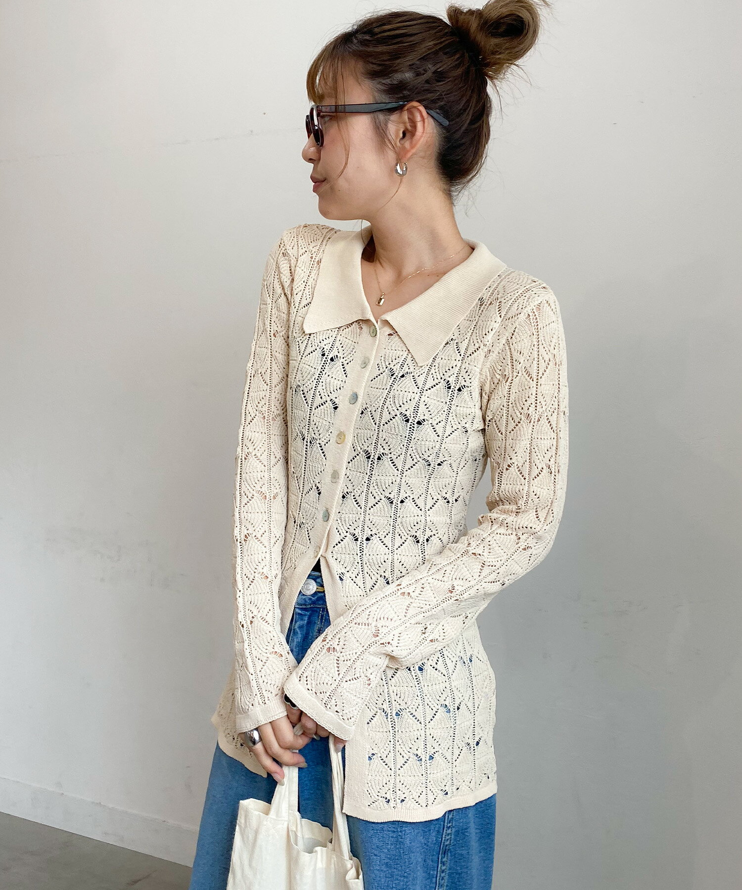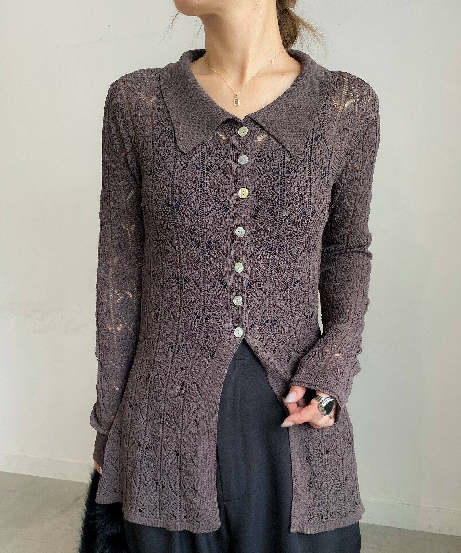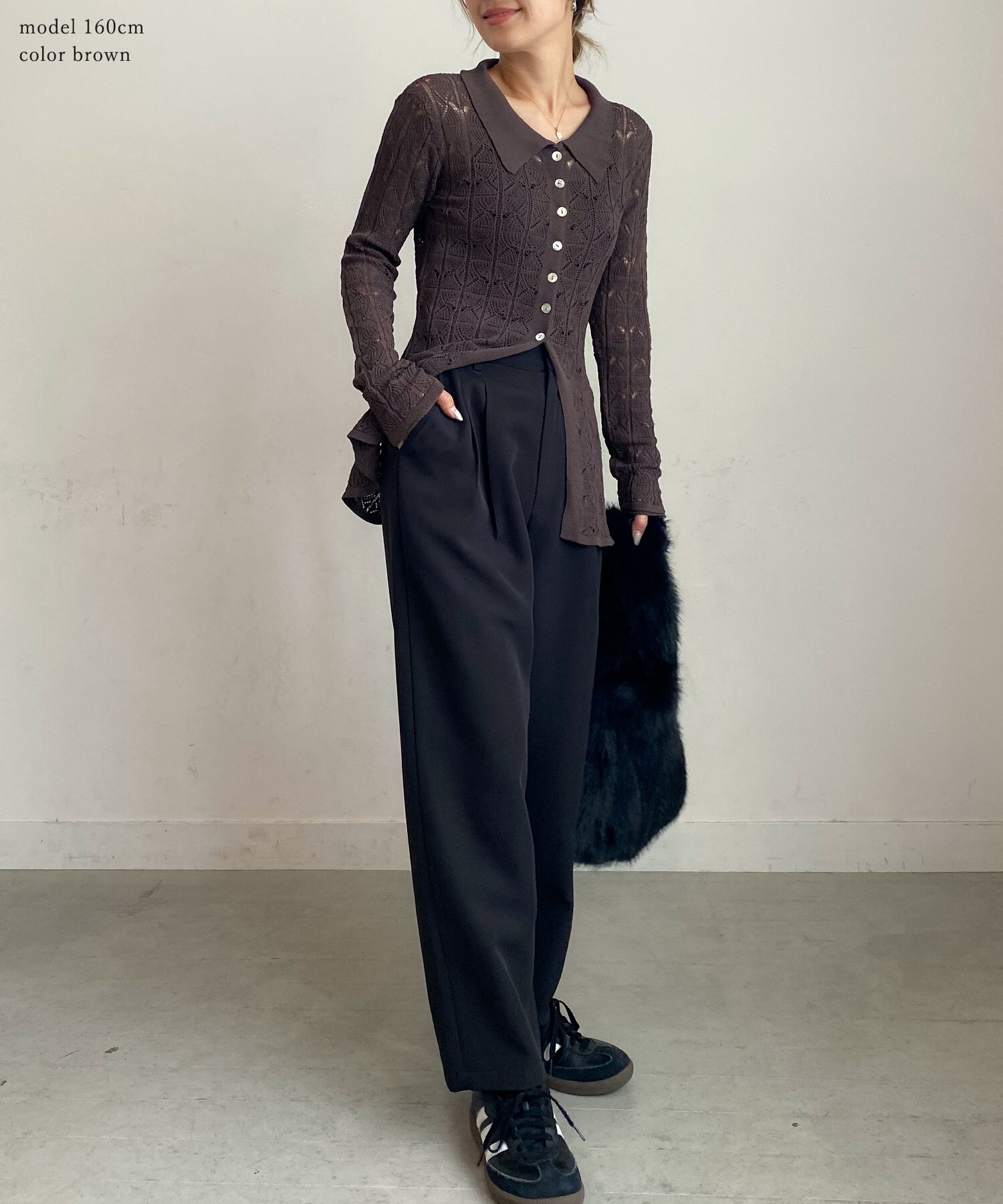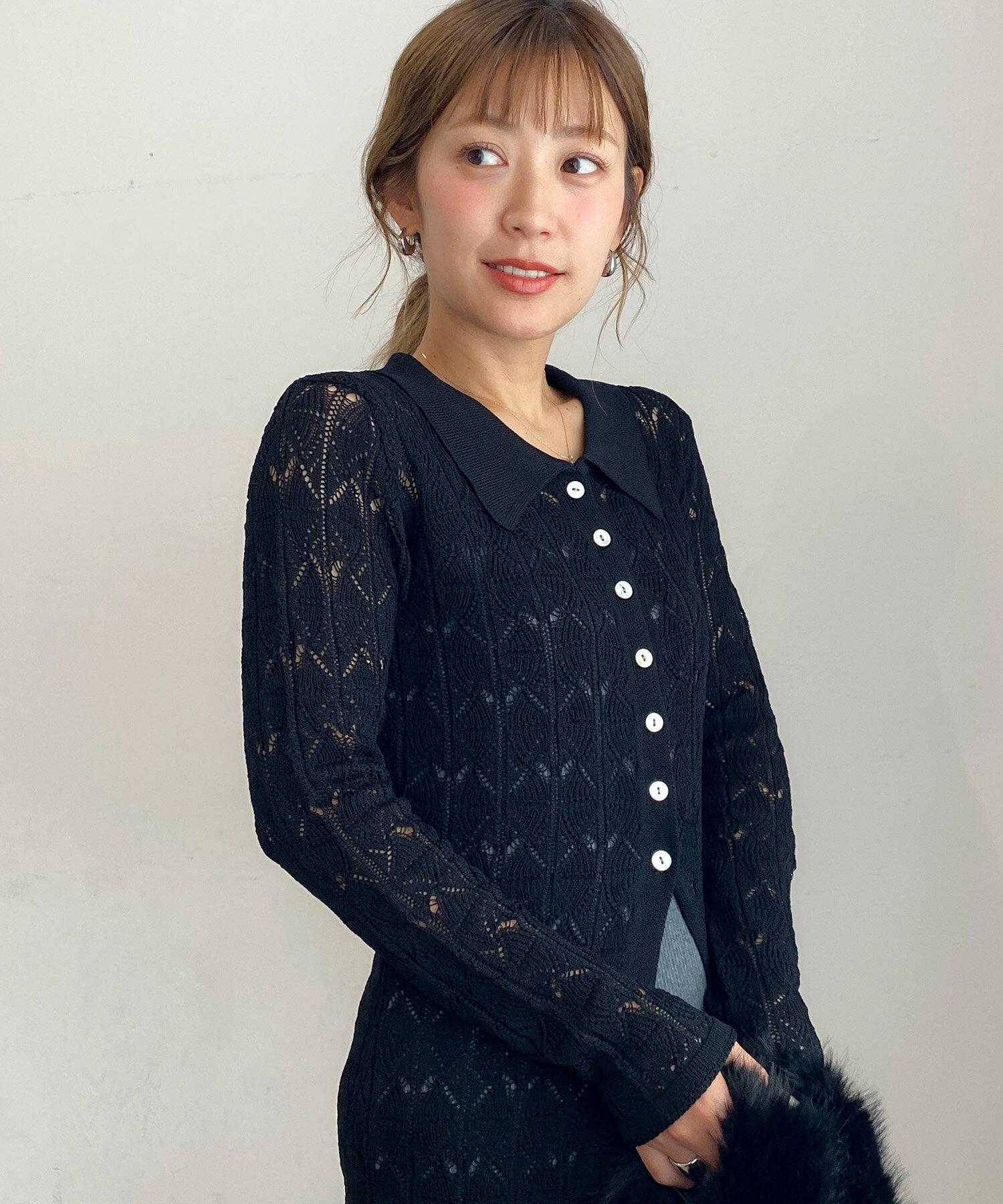 【B】かぎ編みカーディガン 透かし編みニット シアーニット カーディガン レイヤード インナー セーター 着回し 透け感 ロング アイボリー ブラウン ブラック レディース カジュアル 大人 PICHI ピイチ セレクト 7980 10.1