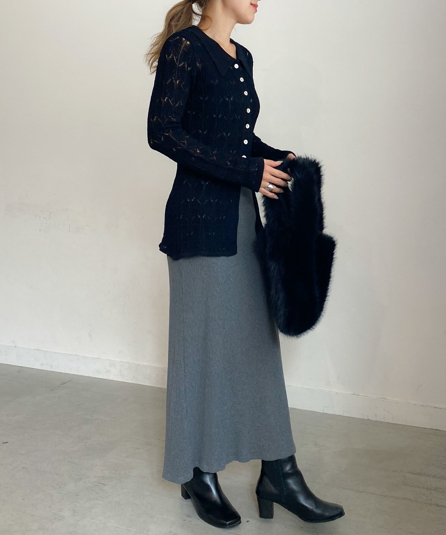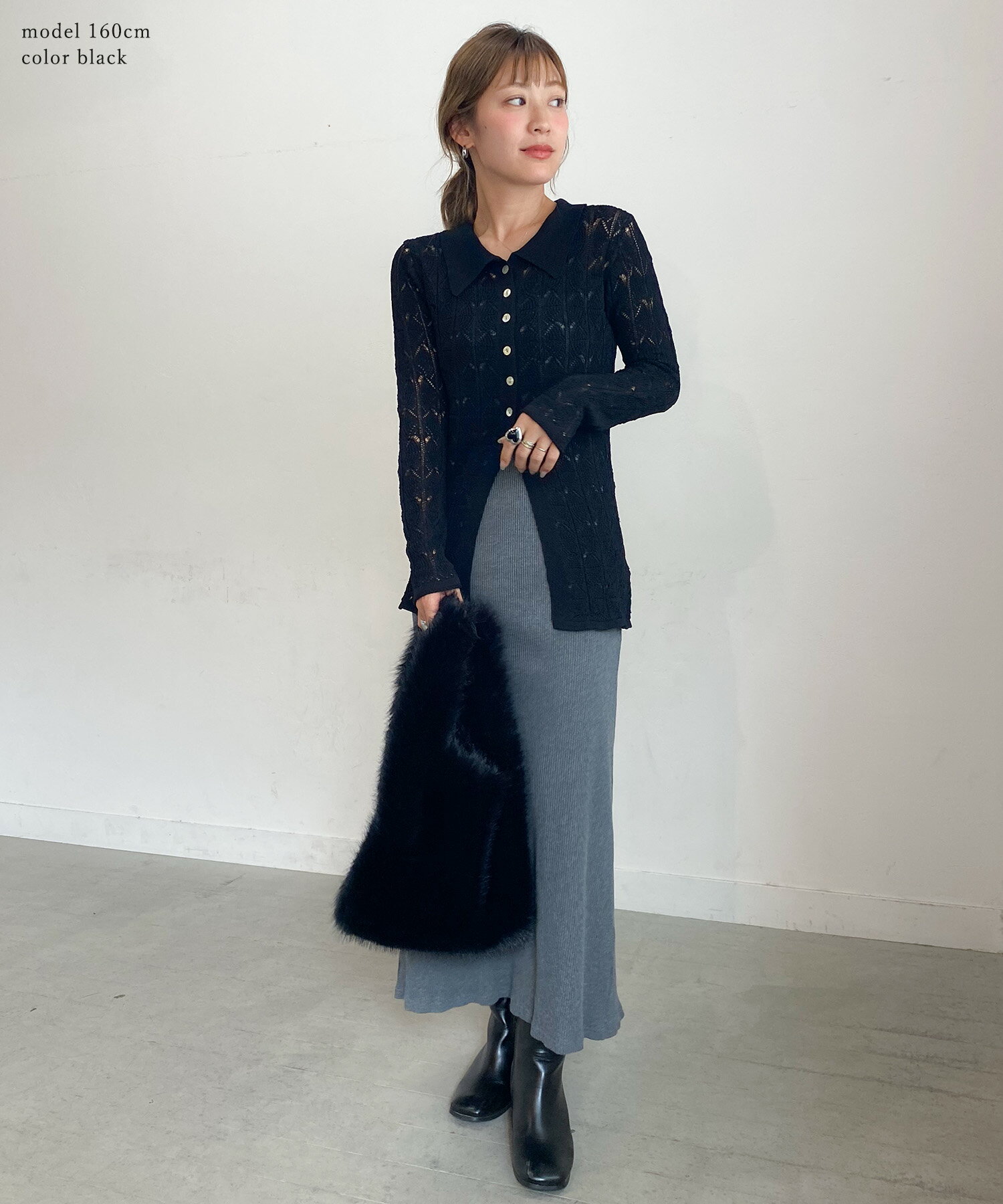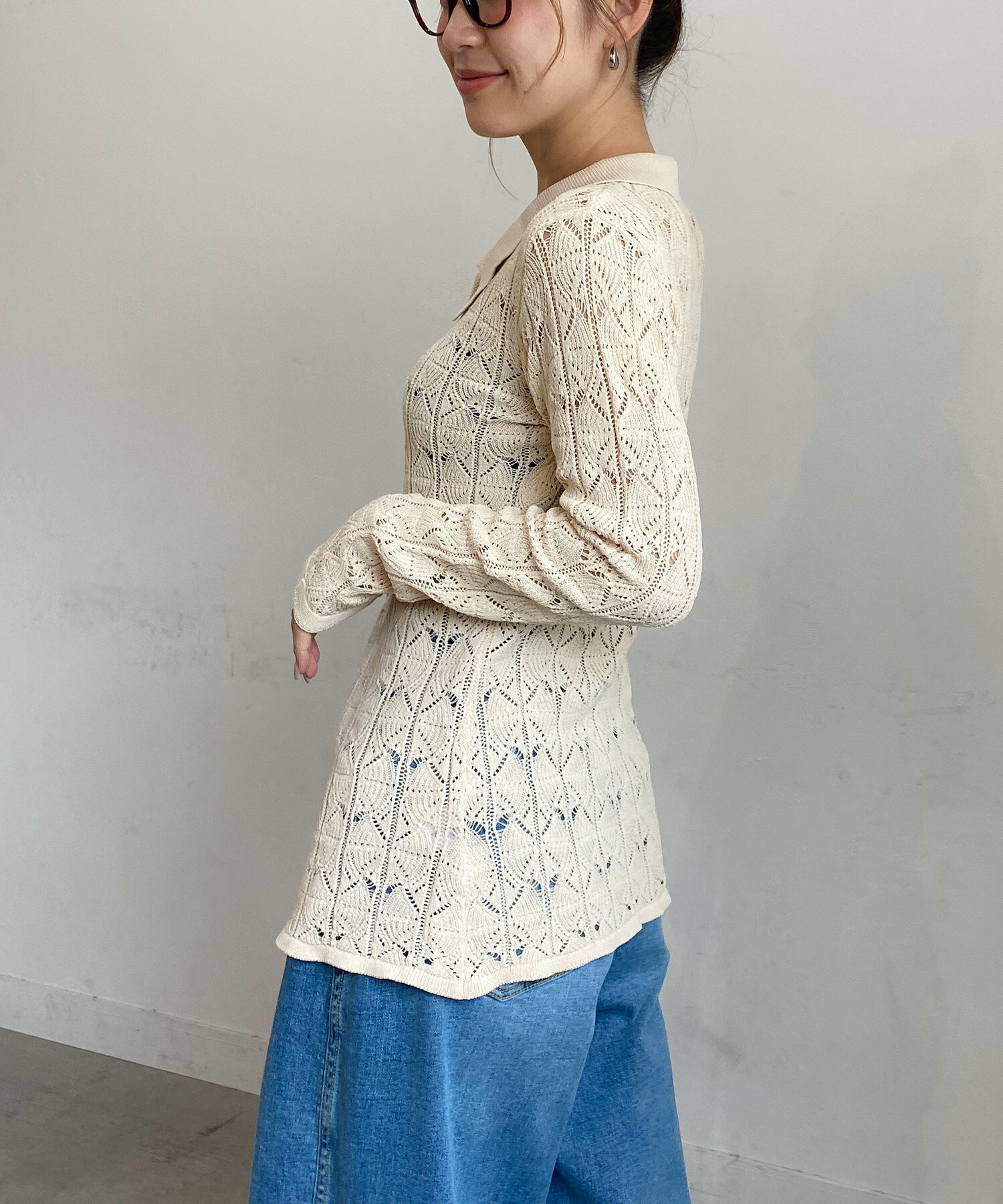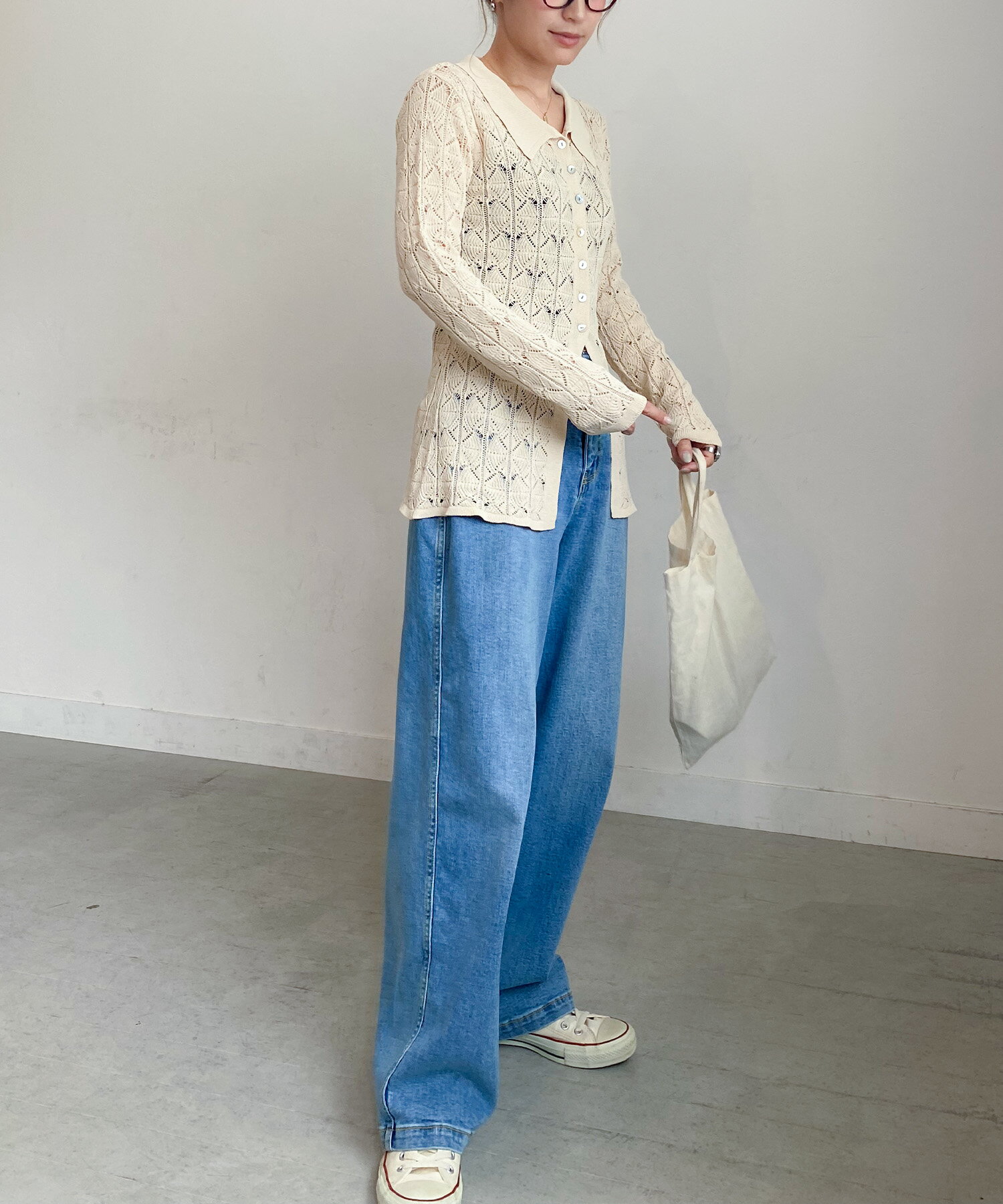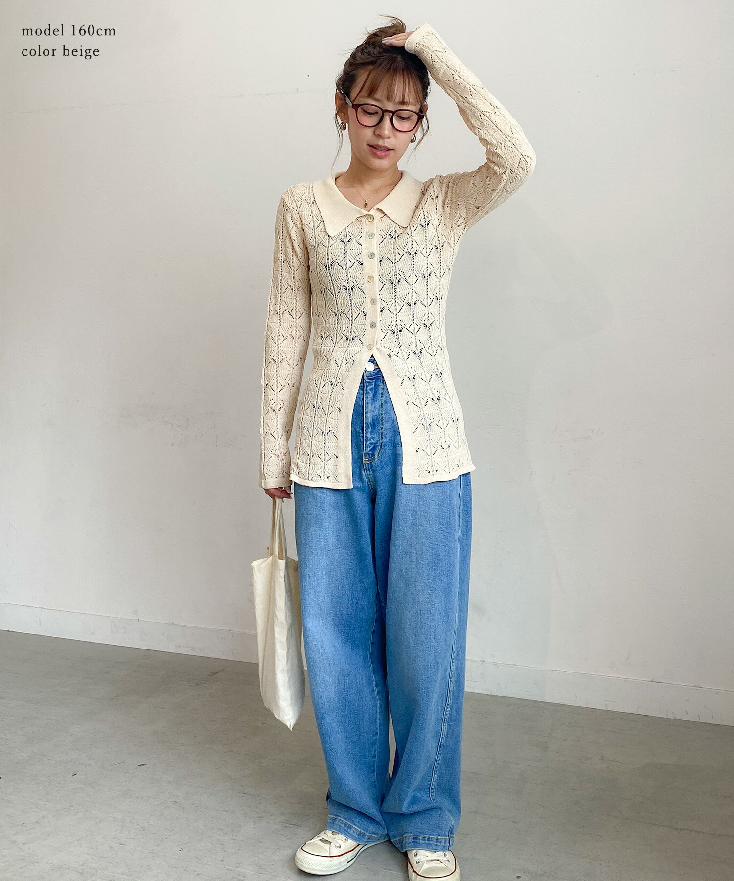 【B】かぎ編みカーディガン 透かし編みニット シアーニット カーディガン レイヤード インナー セーター 着回し 透け感 ロング アイボリー ブラウン ブラック レディース カジュアル 大人 PICHI ピイチ セレクト 7980 10.1
