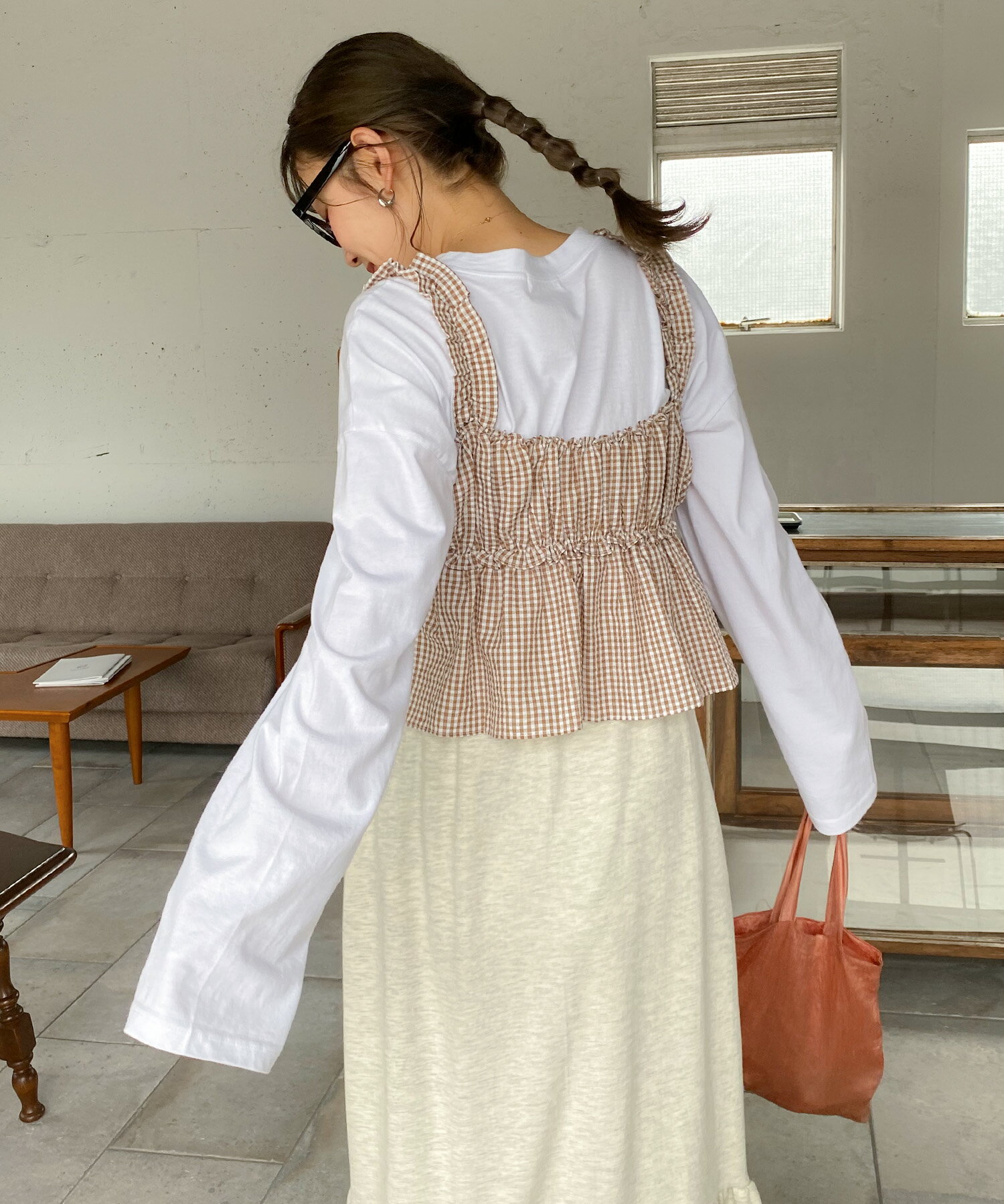 チャック柄キャミビスチェ ギャザービスチェ キャミソールビスチェ ショート丈 レイヤード カジュアル 大人 レディース PICHI ピイチ オリジナル 5900 8.25