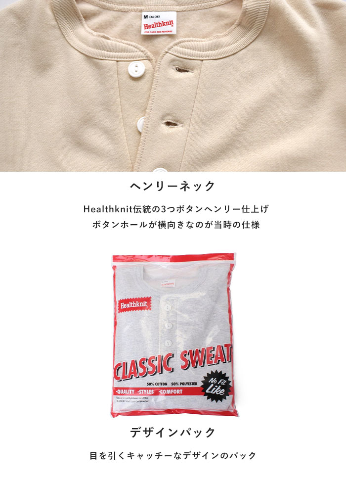 【2024秋冬新作】Healthknit ヘルスニット トップス スウェット トレーナー クラシックスウェット ヘンリーネック長袖 メンズ レディース ユニセックス 長袖 グレー ベージュ ブラック M L XL 54005