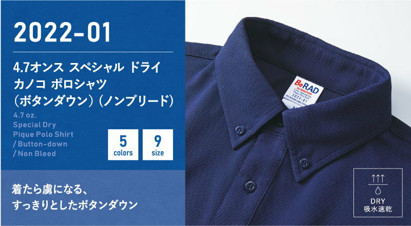 2022-01 4.7オンス スペシャル ドライ カノコ ポロシャツ(ボタンダウン)(ノンブリード) ユナイテッドアスレ United Athle 半袖 無地 スポーツ XS~5XL