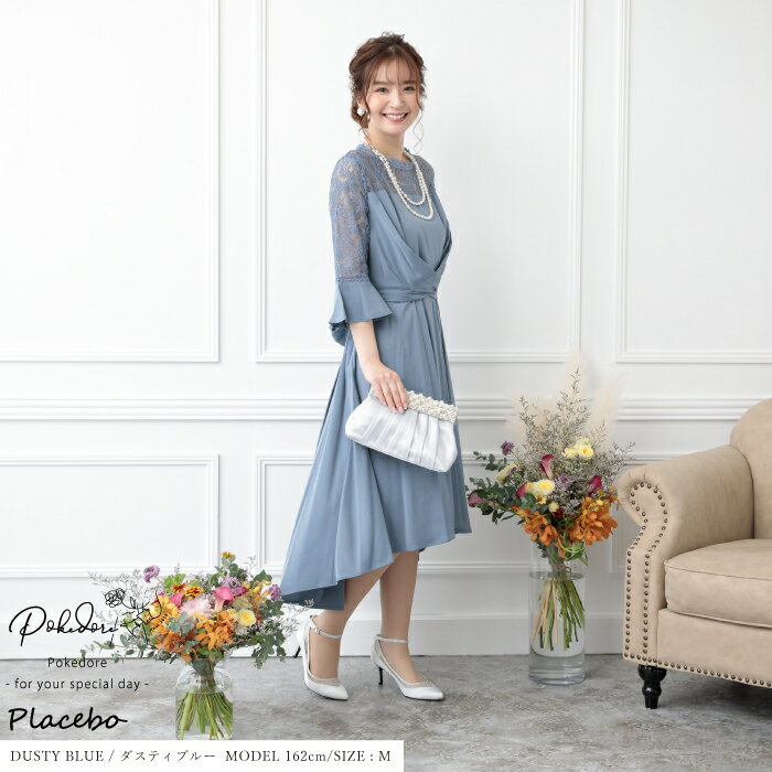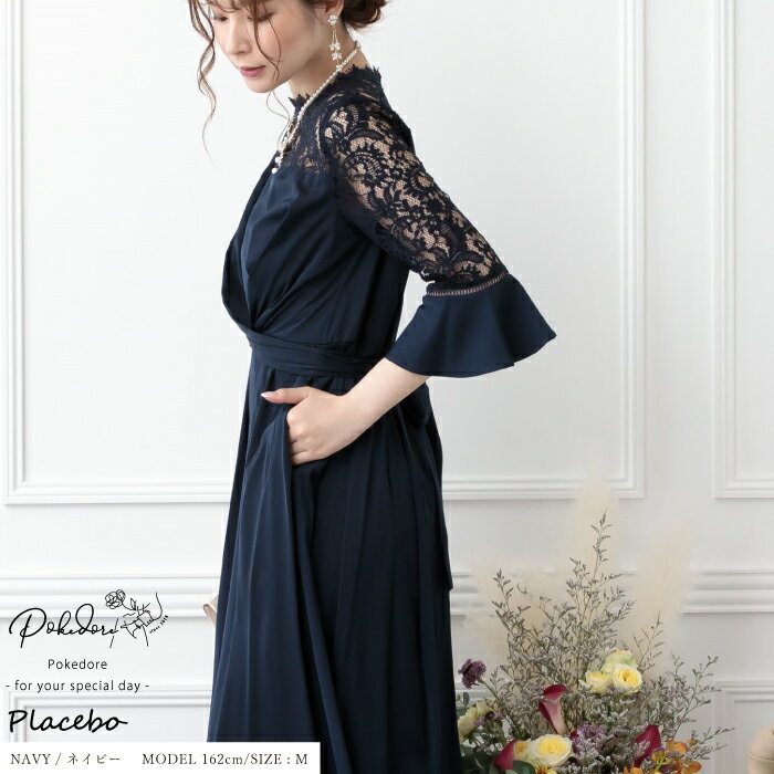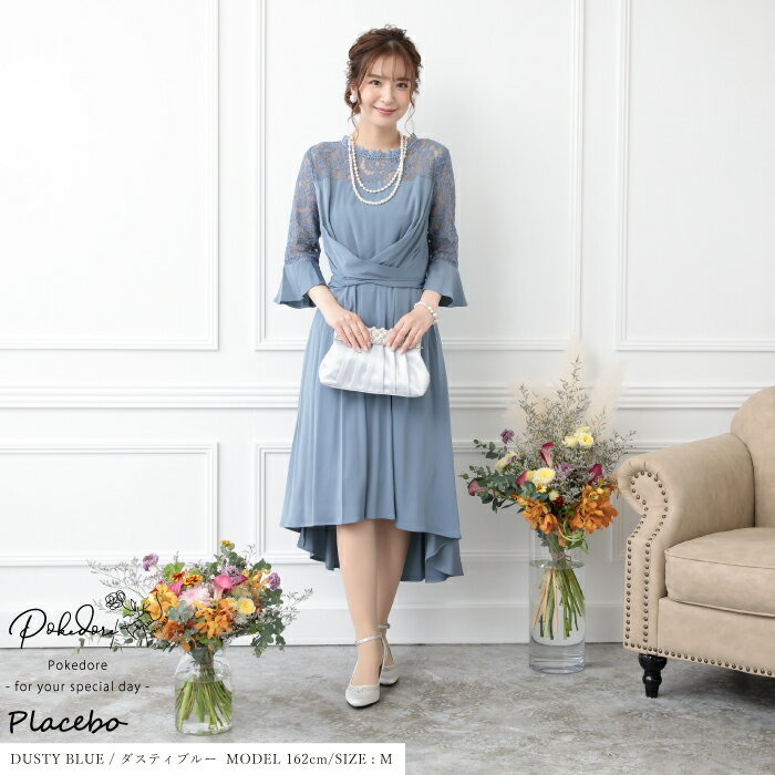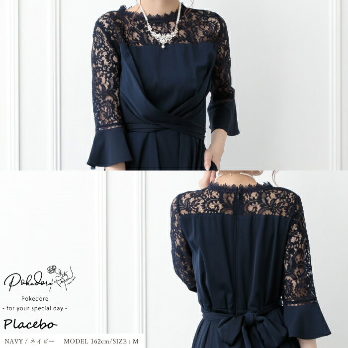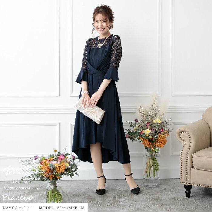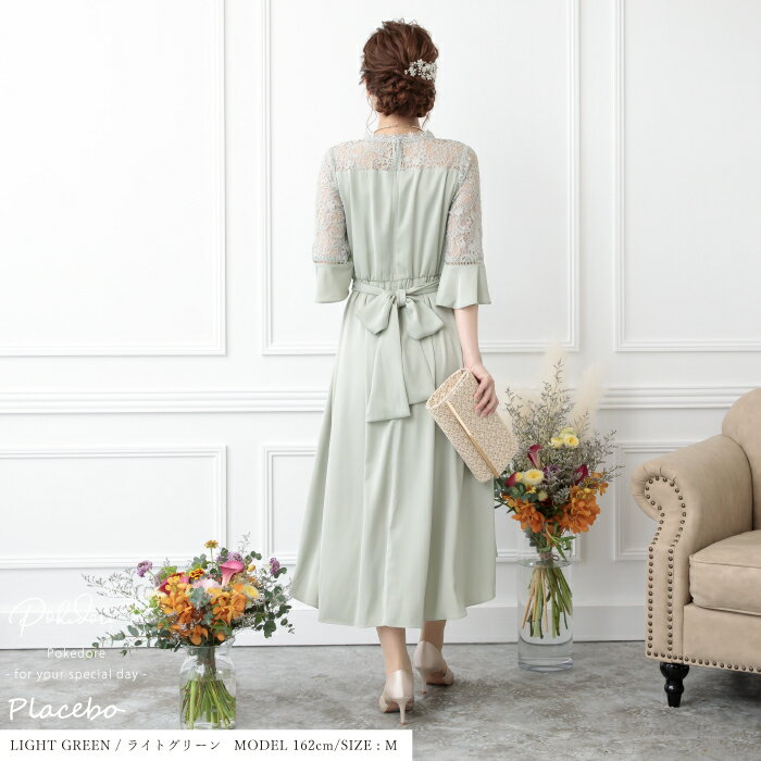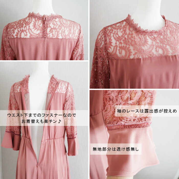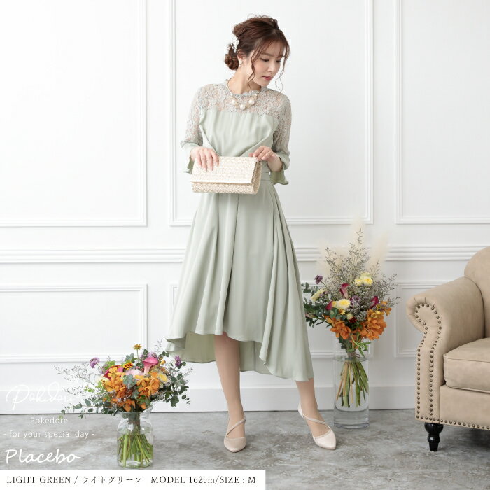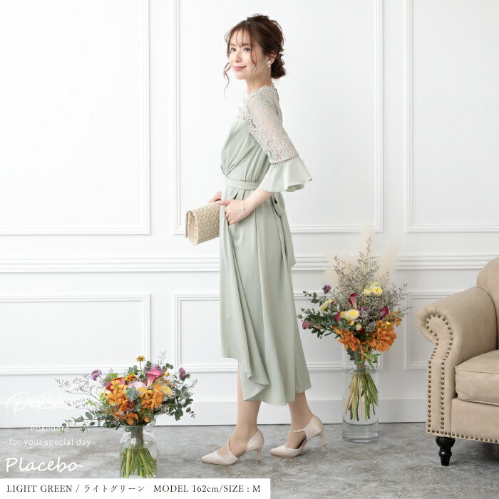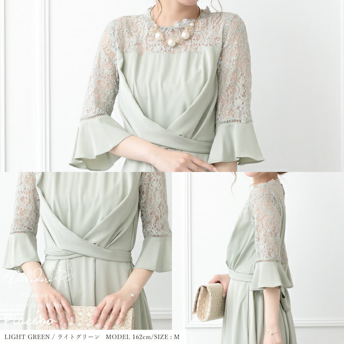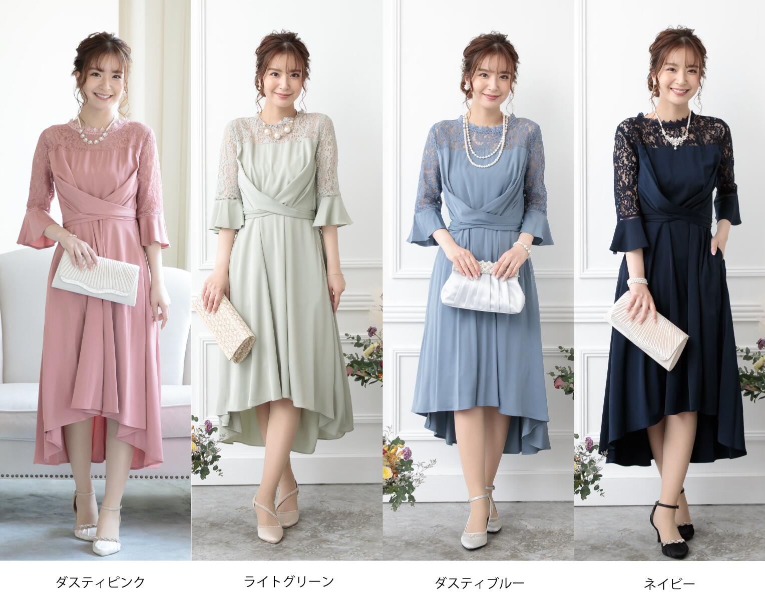 パーティードレス 謝恩会 フィッシュテールドレス グリーン ネイビー ピンク ブルードレス 結婚式 ワンピース 甘め クロスリボン お呼ばれ 袖あり 袖付き 後ろが長い 謝恩会 二次会 同窓会 衣装 長袖 小さいサイズ Sサイズ 150cm 低身長 レース ポケット partydress p18
