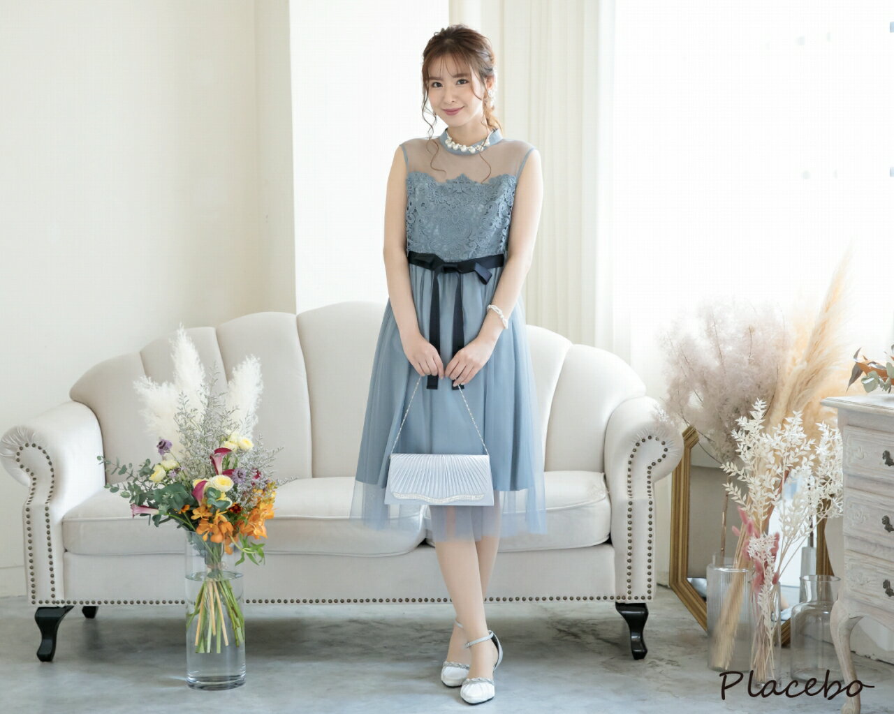 【売り切り価格】シアー切替え チュール ノースリーブ 袖なし レース ワンピース パーティードレス お呼ばれ 結婚式 成人式 同窓会 二次会 謝恩会 お見合い プラシーボ ドレス セレモニー 卒園式