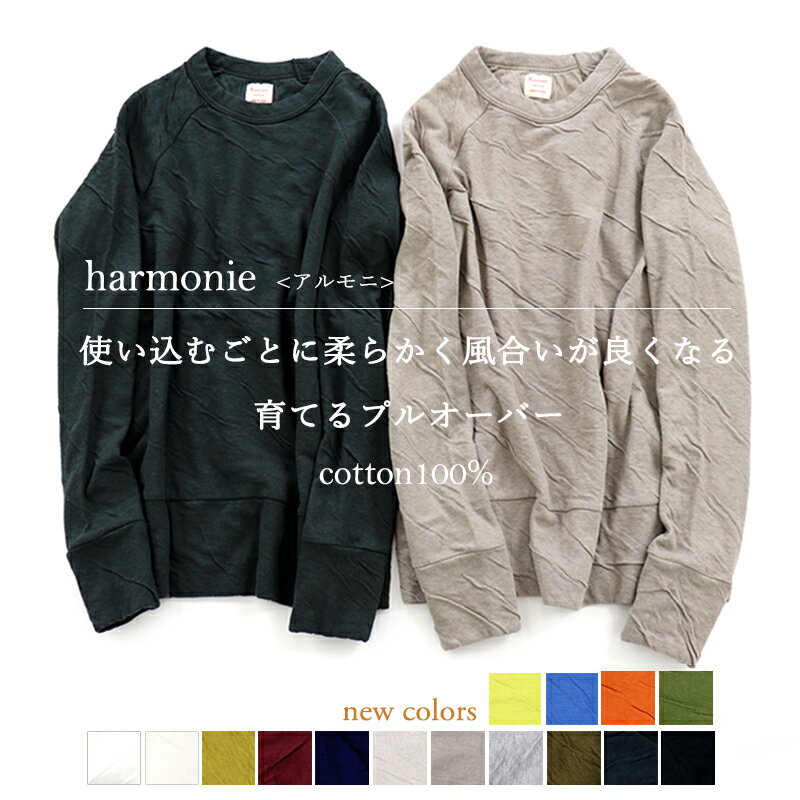 トレーナー レディース ブランド トップス 春 綿 長袖 コットン 無地 カットソー 綿100 白 黒harmonie アルモニ長袖トレーナー もこもこ 接結 おしゃれ 可愛い プルオーバー レディーストレーナー春 綿100% 6810001 日本製 S/M