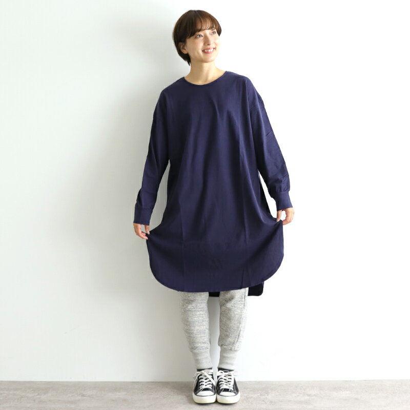 最大1000円OFFクーポン】tシャツワンピ 長袖 膝丈 長袖 レディース 綿100 ロング丈 スリット ロング カットソー 後ろが長い ロンt 長袖tシャツ シンプル 長袖t 長め tシャツワンピ チュニック ロングTシャツharmonie アルモニロングtシャツ 62120685 白 黒 日本製