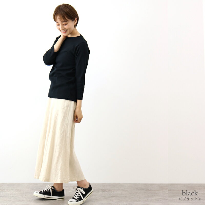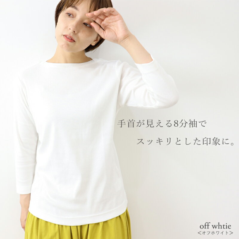 ボートネック 長袖 カットソー レディース 七分袖 8分袖 tシャツ 八分袖 オーガニックコットン 綿 秋 長袖tシャツ きれいめ インナー 秋冬 黒 白harmonie -Organic Cotton-(アルモニ)ボートネックtシャツ 日本製 綿100% 82270245 プレゼント