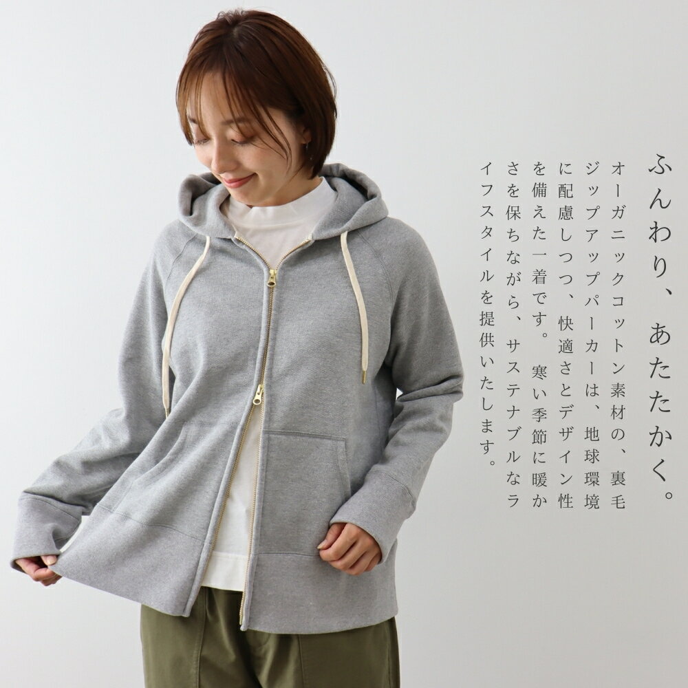 【新作】プルオーバー パーカー レディース スウェット プルオーバーパーカー 無地 大きめ 綿 フーディーおしゃれharmonie -Organic Cotton- アルモニ オーガニックコットン裏毛ダブルジップアップパーカー 綿 日本製 82480335
