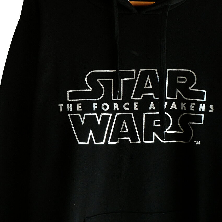 送料無料 セール スターウォーズ パーカー フーディー 映画 ブラック シルバーロゴ マニア メンズ レディース フード スウェット 裏パイル地 薄手 フォースの覚醒 Star Wars The Force Awakens シンプル 男女兼用 オーバーサイズ 大人