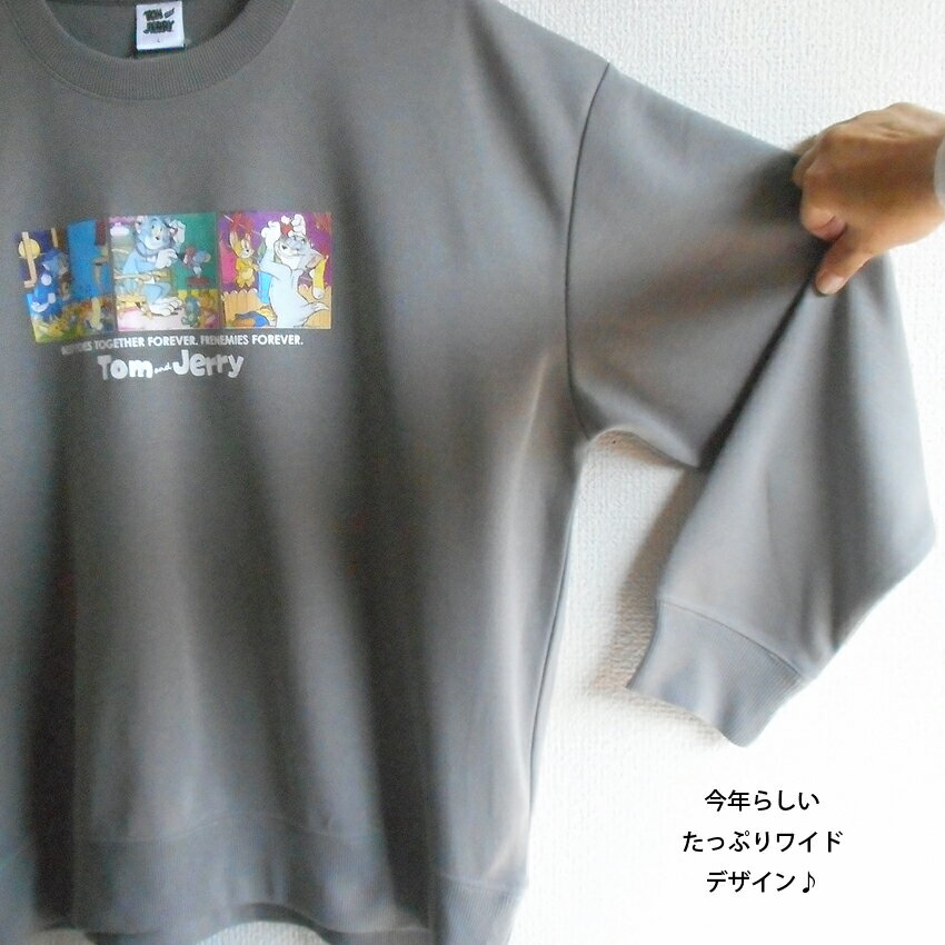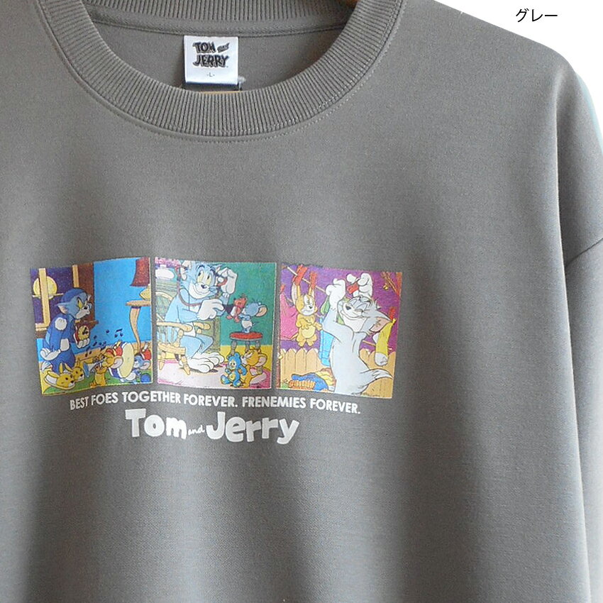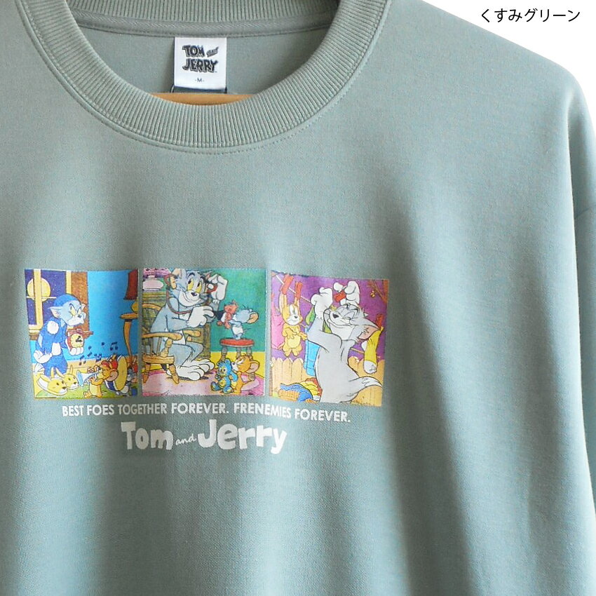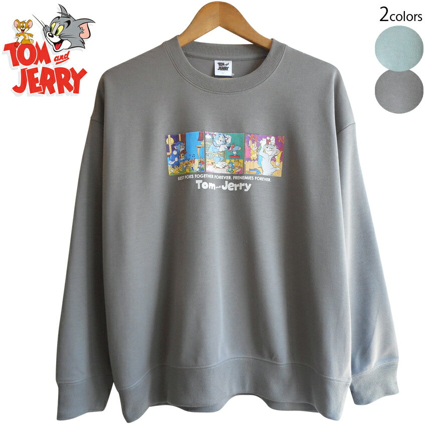 送料無料 トムとジェリー トレーナー レディース メンズ スウェット 大人 アメリカン 古着風 レトロ ポップアート フィルム アニメーション いたずら 3コマ マンガ ペアルック ハンナバーベラ ナチュラル 春 秋 ゆったり ワイド ニブルス USJ くすみカラー グレー グリーン