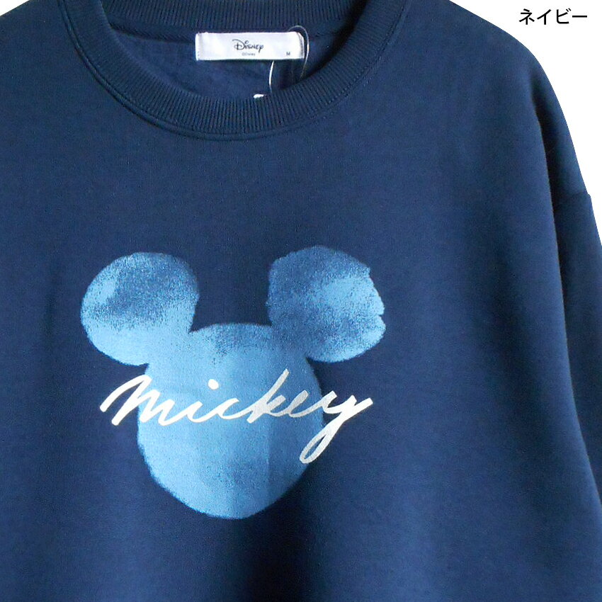 送料無料 ディズニー トレーナー ミッキー ミッキーシェイプ 藍色 ネイビー 紺色 水彩 スウェット 裏起毛 disney レディース ペアルック ステンシル 藍染め 和風 ナチュラル ディズニーランド ミッキーマウス おしゃれ 大人 防寒 男女兼用 TDL 秋冬