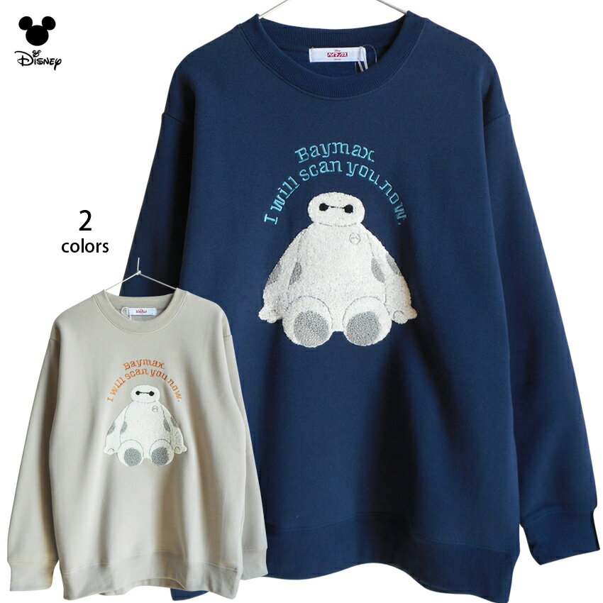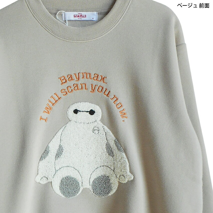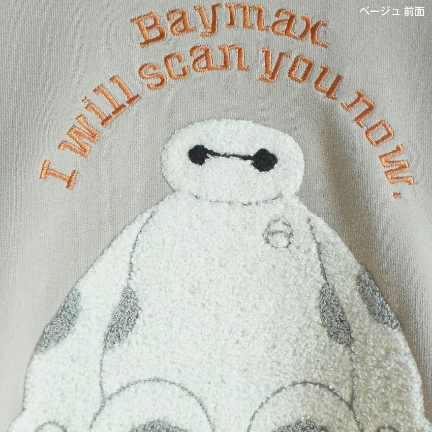 送料無料 ディズニー トレーナー ベイマックス レディース刺繍 相良刺繍 スウェット 裏起毛 baymax disney ペアルック ふわふわ もこもこ ナチュラル ディズニーランド ピクサー おしゃれ 大人 かわいい 防寒 男女兼用 TDL 秋冬 ベージュ ネイビー 白