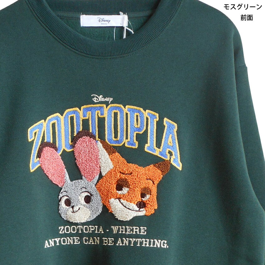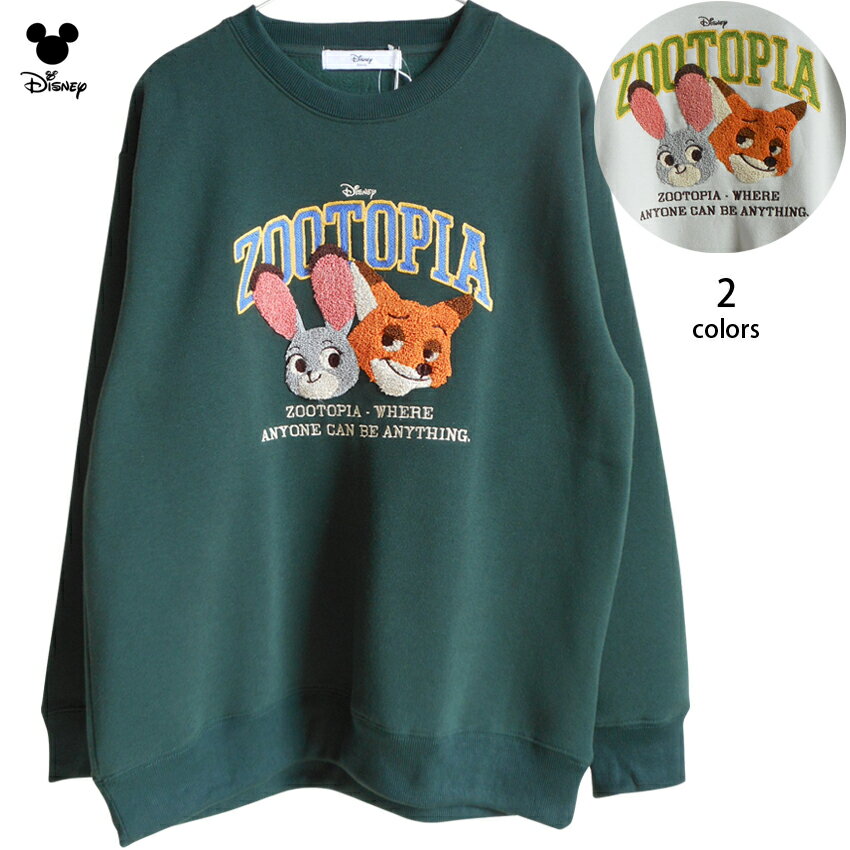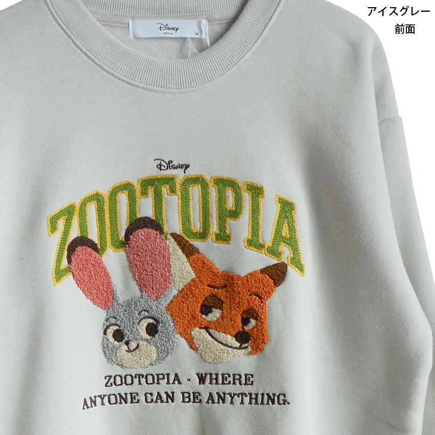 送料無料 ディズニー トレーナー ズートピア レディース ジュディ ニック 刺繍 相良刺繍 スウェット 裏起毛 zootopia disney ペアルック ふわふわ もこもこ うさぎ キツネ ディズニーランド ピクサー おしゃれ 大人 かわいい TDL 秋冬 ライトグレー モスグリーン 白