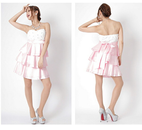 ドレス キャバドレス ワンピース セクシー ナイトドレス ワンピース キャバクラ ホステス 水商売 クラブ ワンピース ホステス 水商売 結婚式【華麗 サテン三段ティアードバストスートン散りばめワンピース】【楽ギフ_包装】