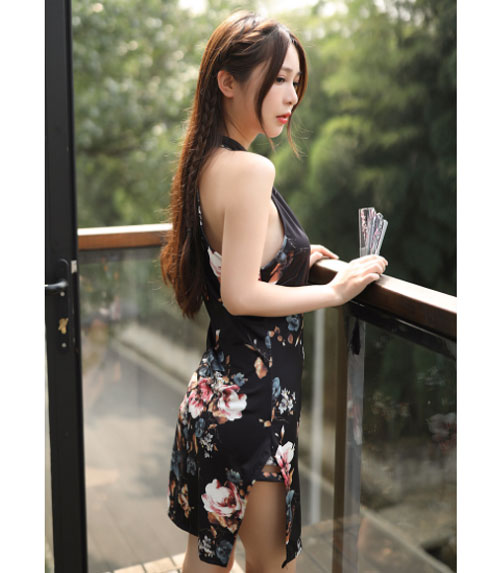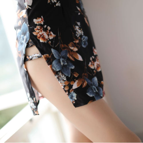 コスプレ「チャイナ ストレッチ ミニ ドレス」 Tバック ショーツ付 チャイナドレス フラワープリント ナイトドレス セクシードレス 和柄 よさこい おいらん 着物 キャバ 花魁 コスプレ 勝負服 キャバドレス 撮影会 グラビア 衣装 パーティ