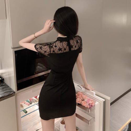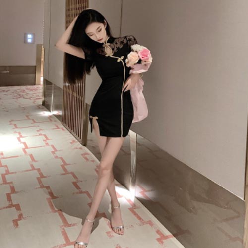 コスプレ「チャイナセクシー レースネット使い袖付きゴールドパイピングミニドレス」 チャイナドレス ナイトドレス 高級 刺繍 おいらん キャバ 花魁 コスプレ パーティ セクシー 撮影会 グラビア 衣装 ランキング