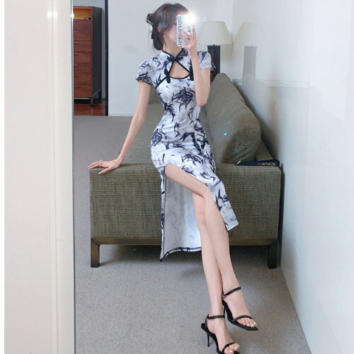 コスプレ「3サイズチャイナセクシーパイピング&プリントロングドレス」 チャイナドレス ナイトドレス 高級 刺繍 おいらん キャバ 花魁 コスプレ セクシー 撮影会 グラビア 衣装 お返し 歓迎会 送迎会
