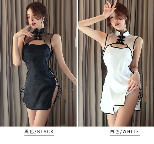 送料無料「沖縄、離島の方は対象外」 「黒パイピング仕様 型押し花柄チャイナ サイドスピンドルドロー ミニ ドレス」 Tバックショーツ付 セクシー 花魁 チャイナドレス コスプレ ホワイトデー パーティ 撮影会 【smtb-k】【w4】