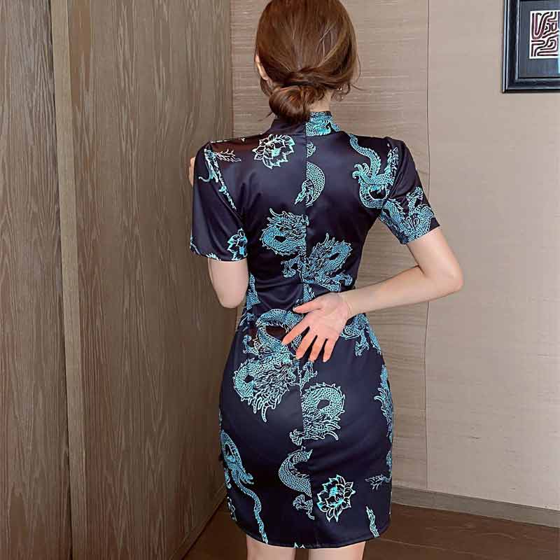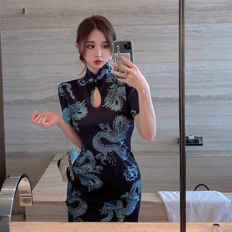 「龍風采柄 ミニチャイナドレス」 ナイトドレス レース キャバ 勝負服 セクシー コスプレ セクシー スリット 撮影会 グラビア 衣装 新入荷 パーティ