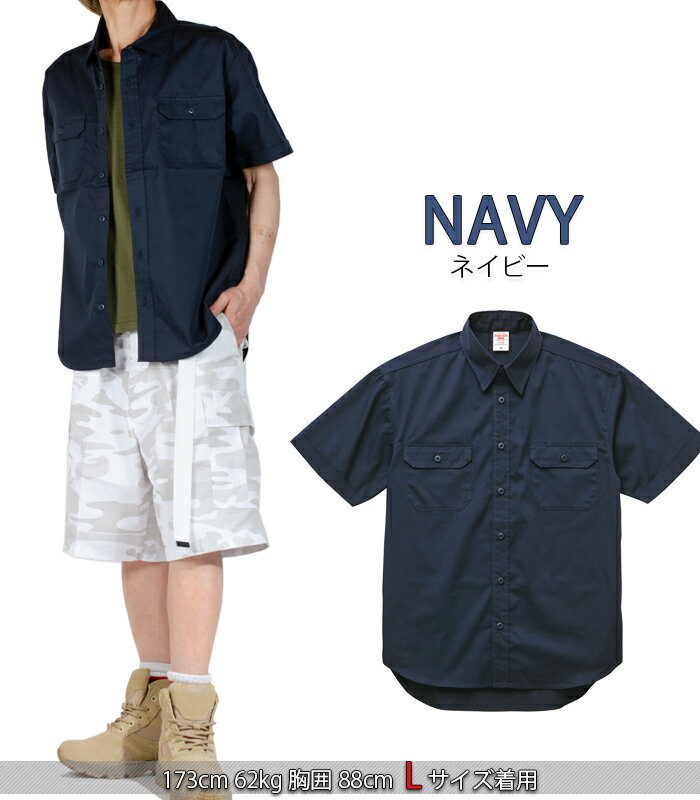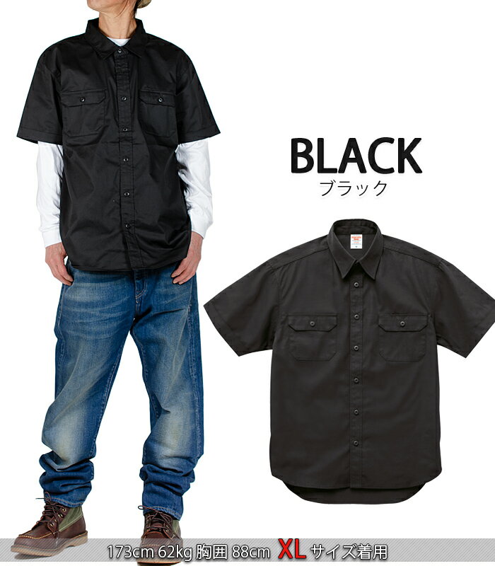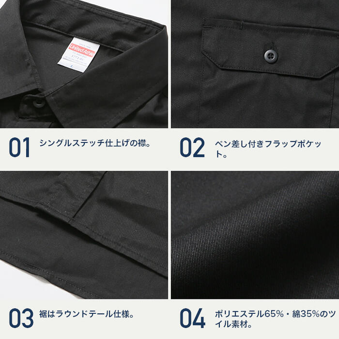 ワークシャツ UNITED ATHLE ワークシャツ ユナイテッドアスレ 半袖シャツ メンズ レディース 無地 ポケット 大きいサイズ ツイル ブラック 黒 ネイビー 紺 ワーク系 ワークウエア 作業着 1772-01 父の日プレゼント
