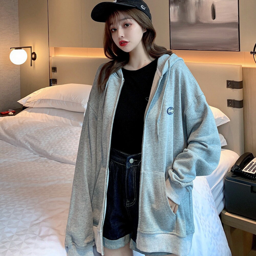 【20%OFF】パーカー レディース スウェット ジップパーカー 薄手 韓国ファッション 大きいサイズ トップス ビックシルエット おしゃれ オルチャンファッション ジップアップ アウター ジップアップパーカー 長袖 ペアルック